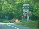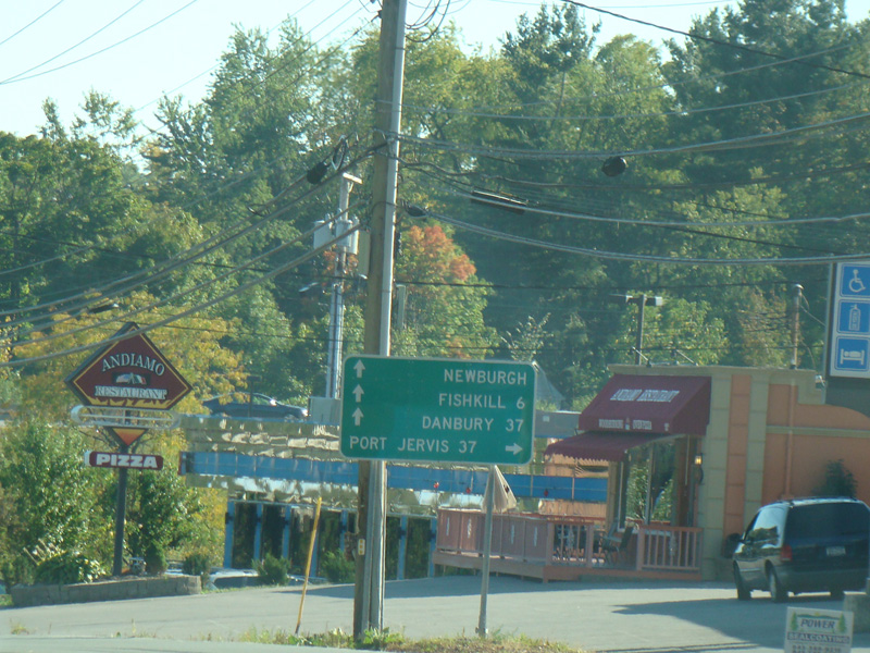 There is an interchange with I-84/NY 52 and NY 32. Turn right at the first light for NY 32 north, from which there is an entrance to I-84/NY 52 west. Turn left at the second light for I-84/NY 52 east. Straight ahead, southbound NY 32 is multiplexed with US 9W.