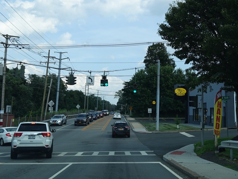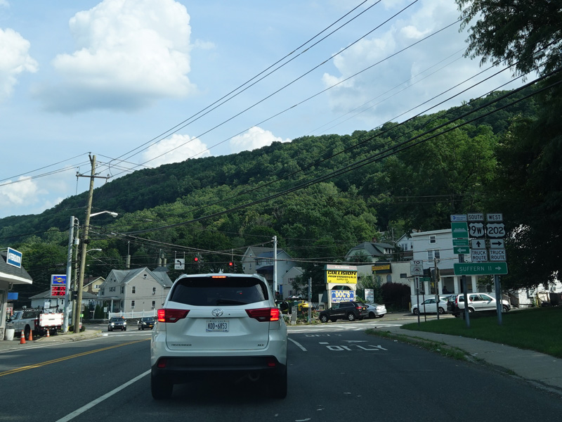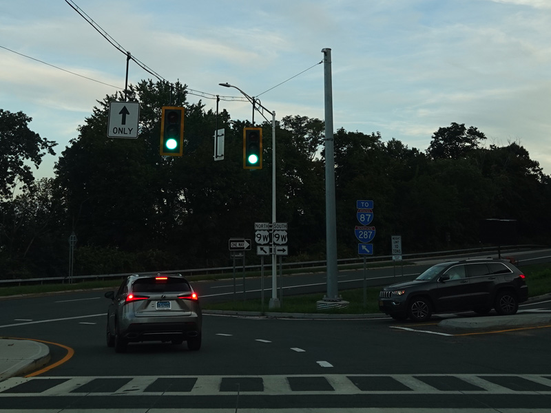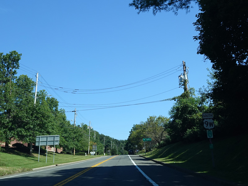 Turn right at this traffic light to continue south on US 9W. Turn left to go back north and for access to the New York Thruway (I-87/I-287).
