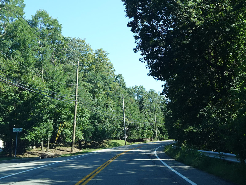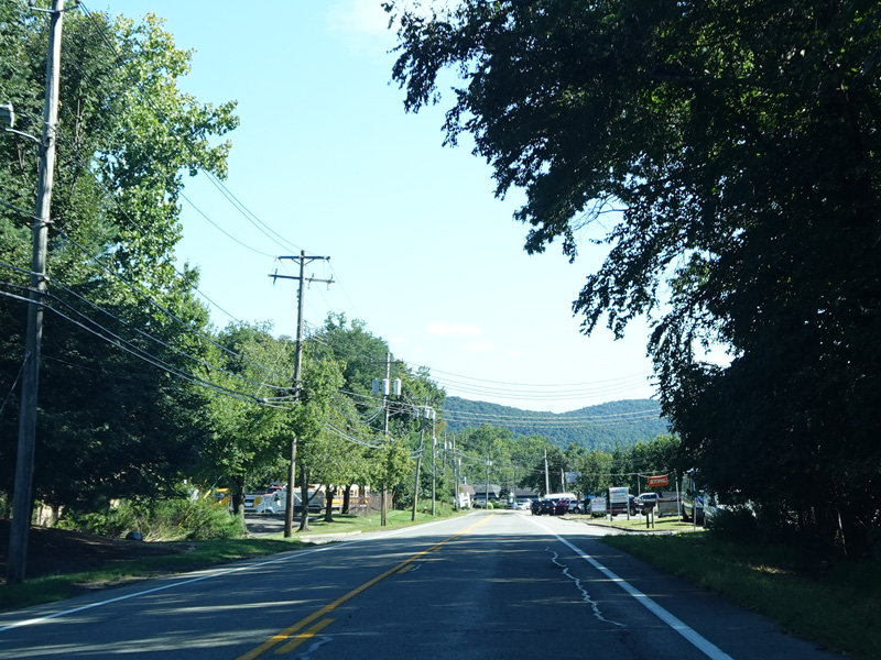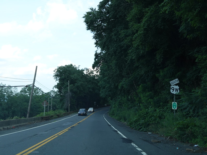 Skipping a few miles, US 9W runs south through Palisades as a two-lane undivided road. The New York-New Jersey state line is just ahead. US 9W continues into New Jersey straight ahead.