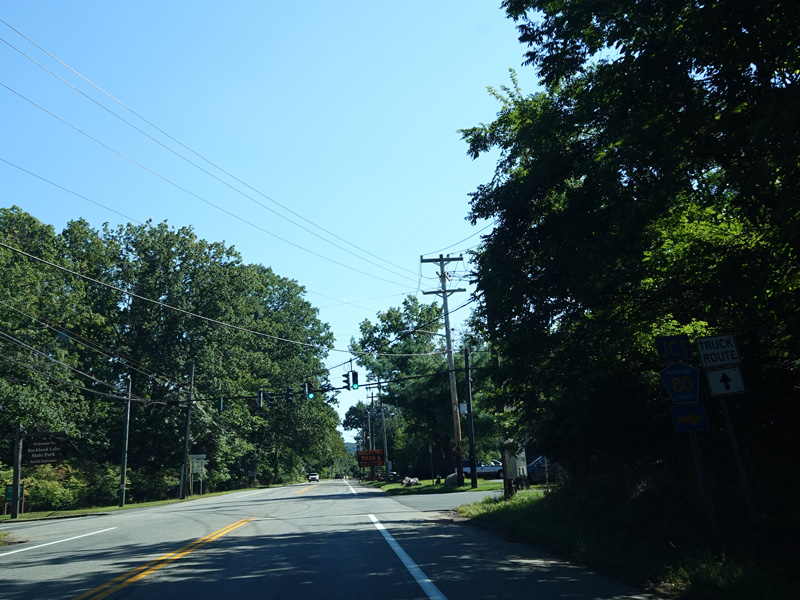 There is a traffic light at Lake Road (CR 80). Turn left for Rockland Lake State Park.