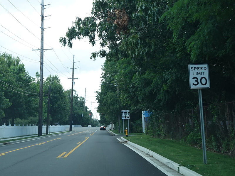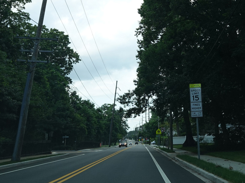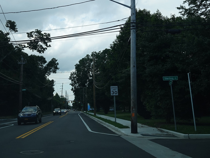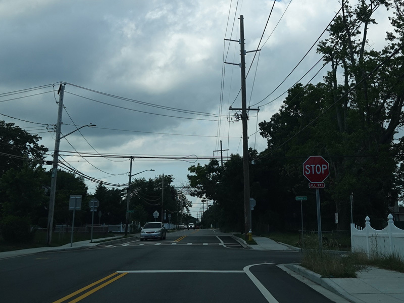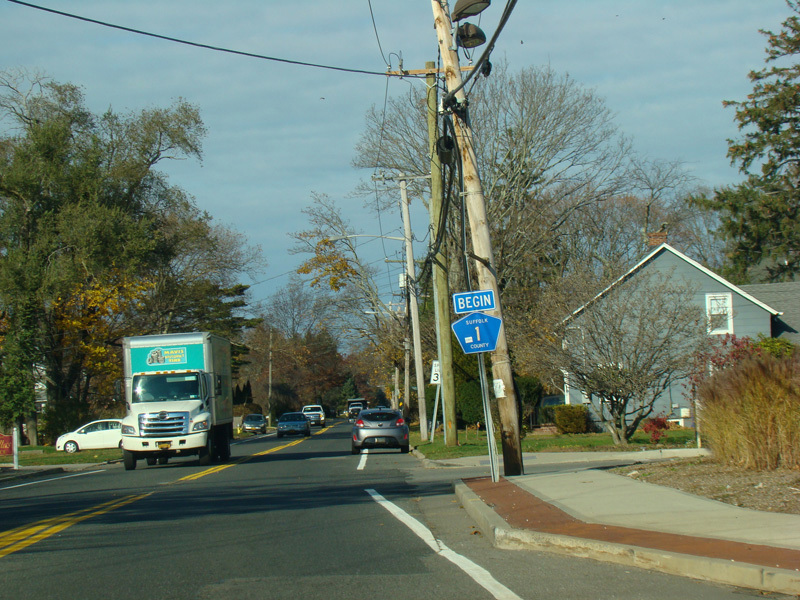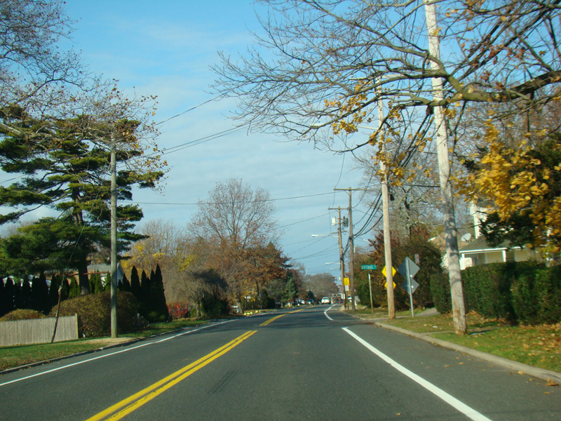 There is a traffic light at Sunrise Highway (NY 27). Turn right to go east or left to go west.