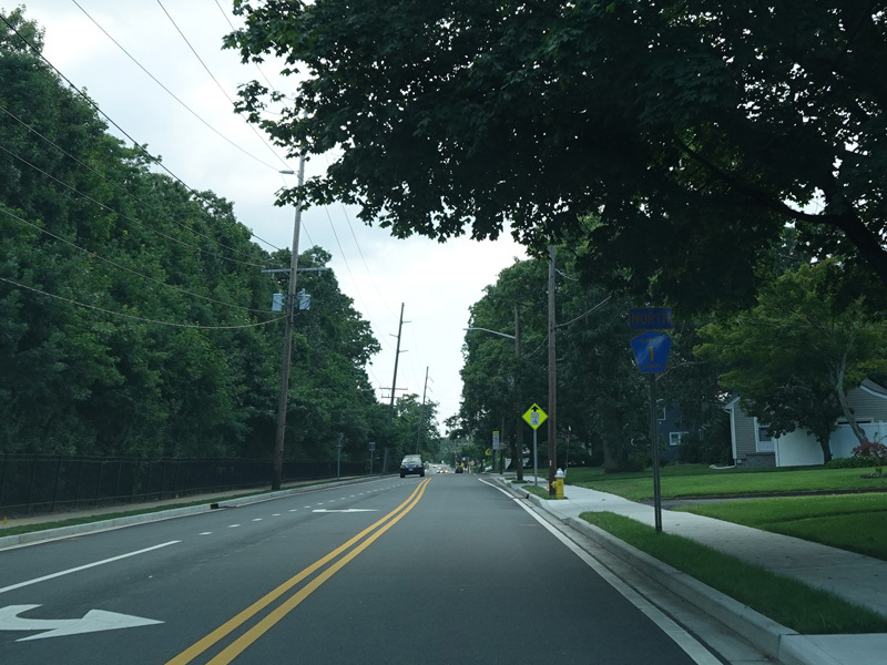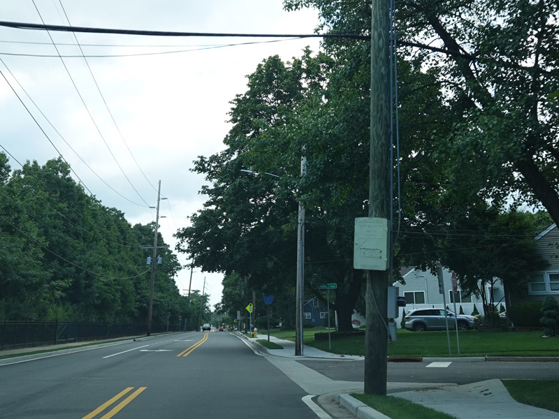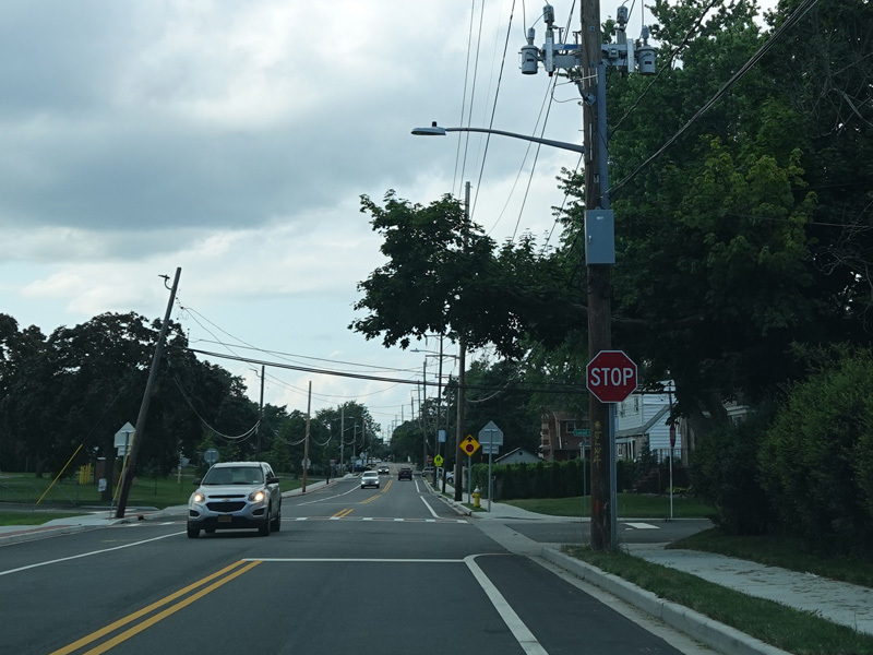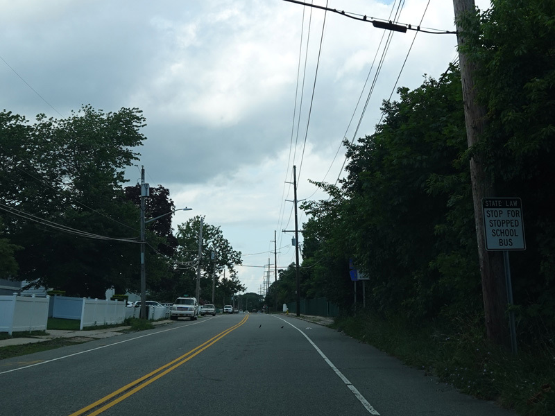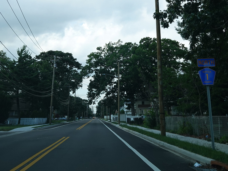 County Line Road begins at Merrick Road (NY 27A) and runs north along the Nassau-Suffolk county line as a two-lane undivided road.