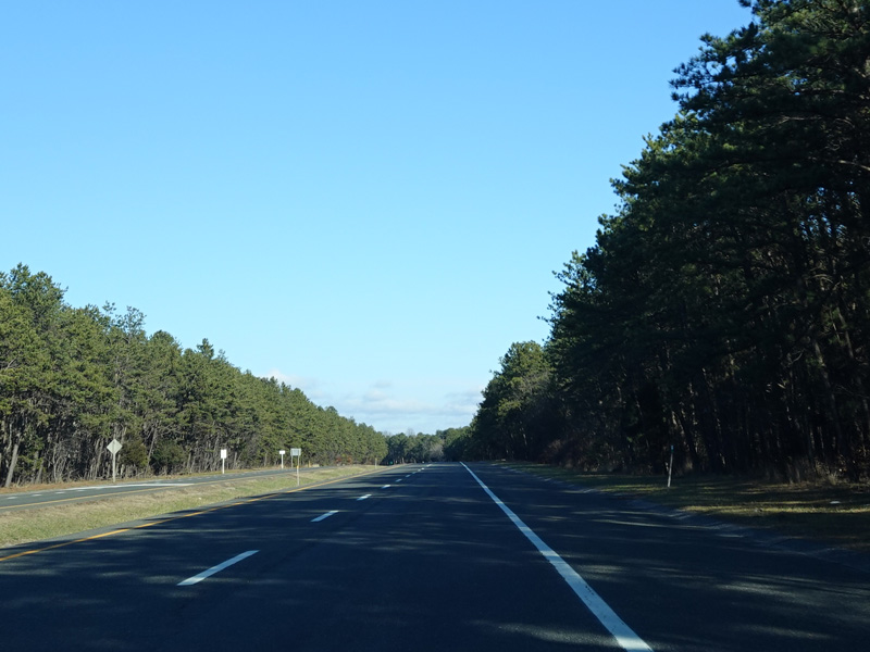 Cross River Drive begins at Quogue-Riverhead Road (CR 104). It runs east for a short distance before curving to the north.