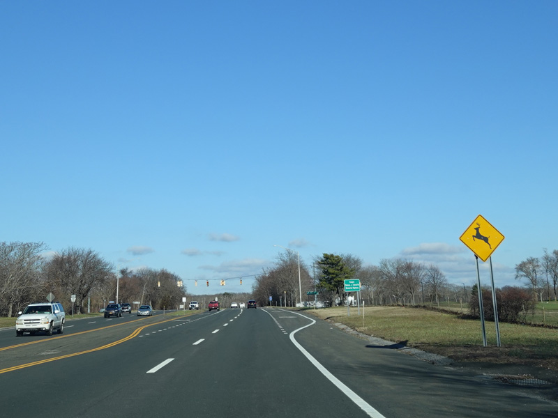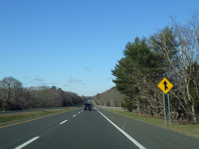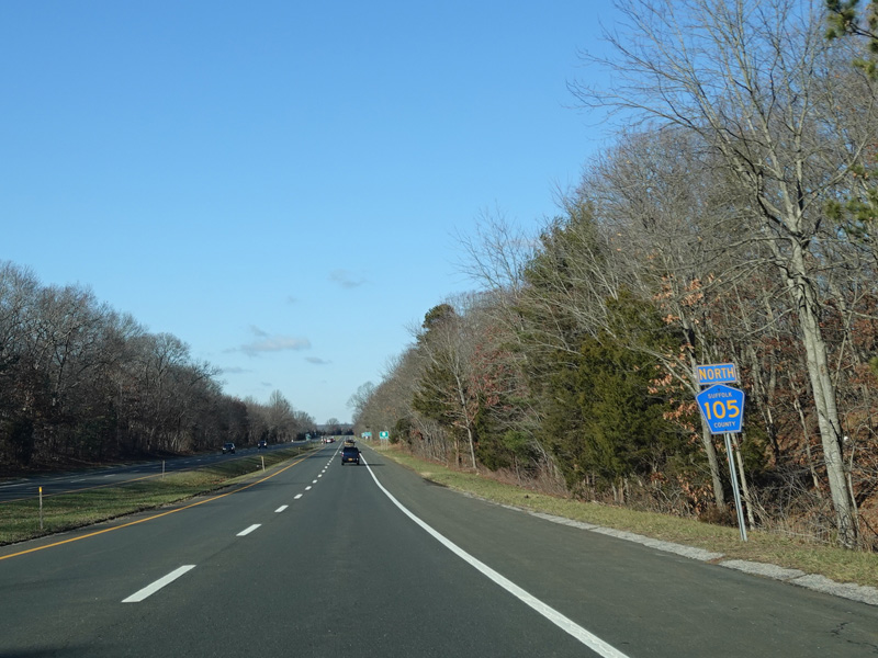 There is a traffic light at Flanders Road (NY 24). Turn left to go north or right to go south.
