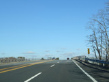 On the other side of the bridge, there is a traffic light at Riverside Drive.