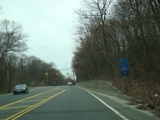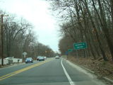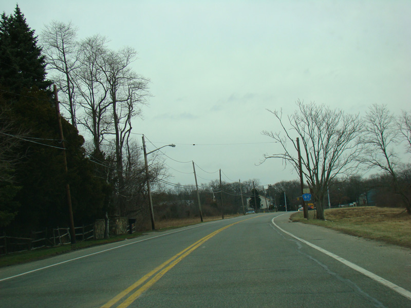 The intersection with Meadow Glen Road in Fort Salonga was uncontrolled until 2019. A traffic light has since been installed here.