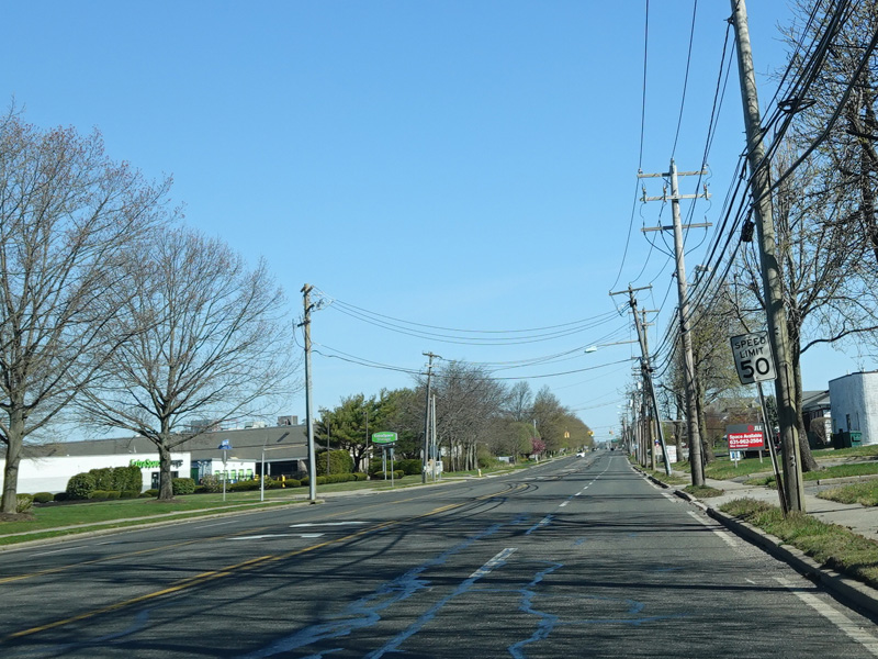 Johnson Avenue becomes a county route at Sunrise Highway (NY 27) and runs north as a four-lane undivided road.