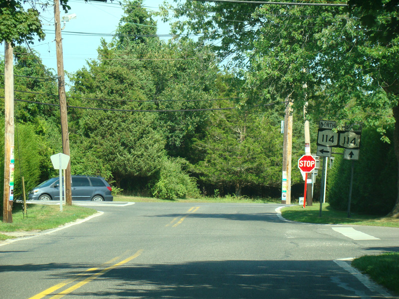 West Neck Road ends here at North Ferry Road (NY 114). Turn left to go north or continue straight ahead to go south.