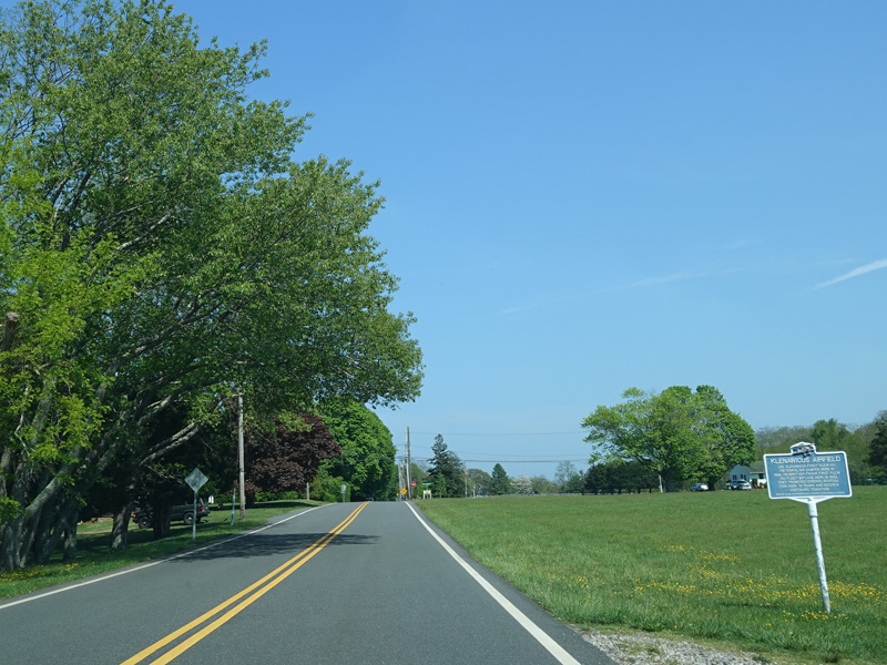 Burns Road begins at St. Mary's Road on Shelter Island and runs east as a two-lane undivided road.