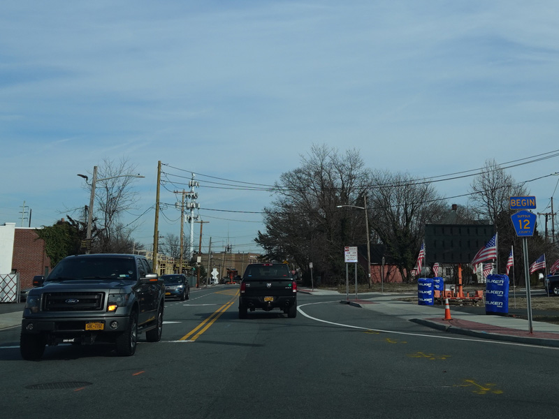 There is a traffic light at Broadway (NY 110). Turn left to go north or right to go south. Route signage is completely lacking at this intersection.