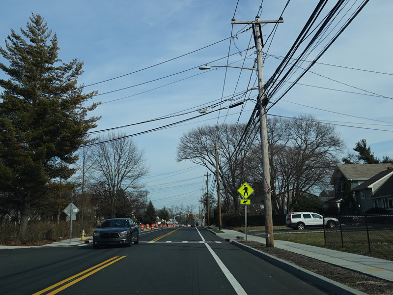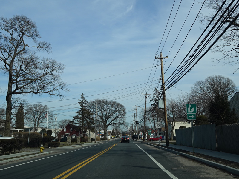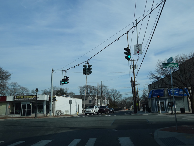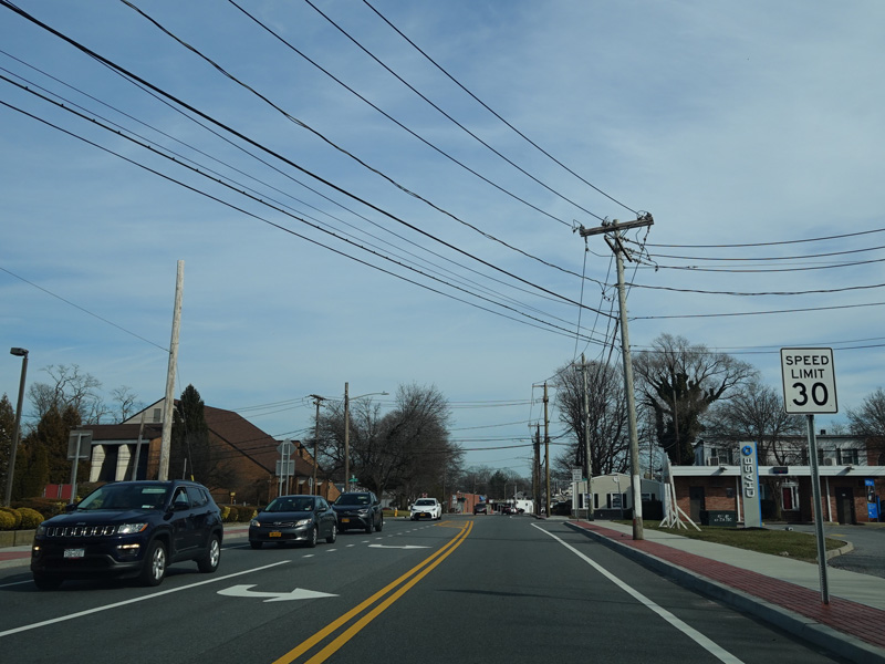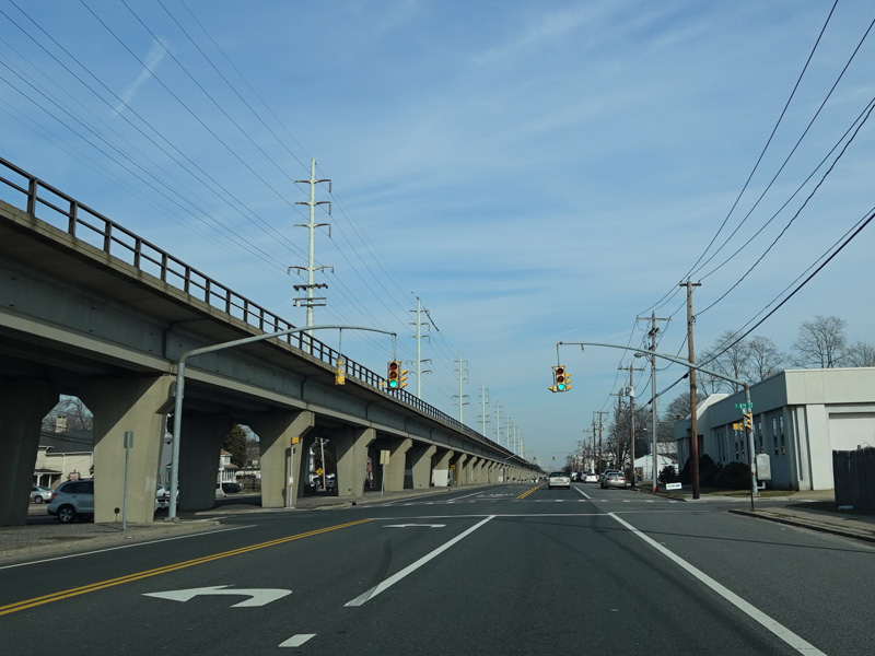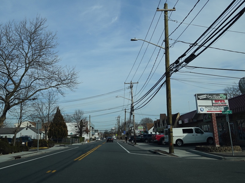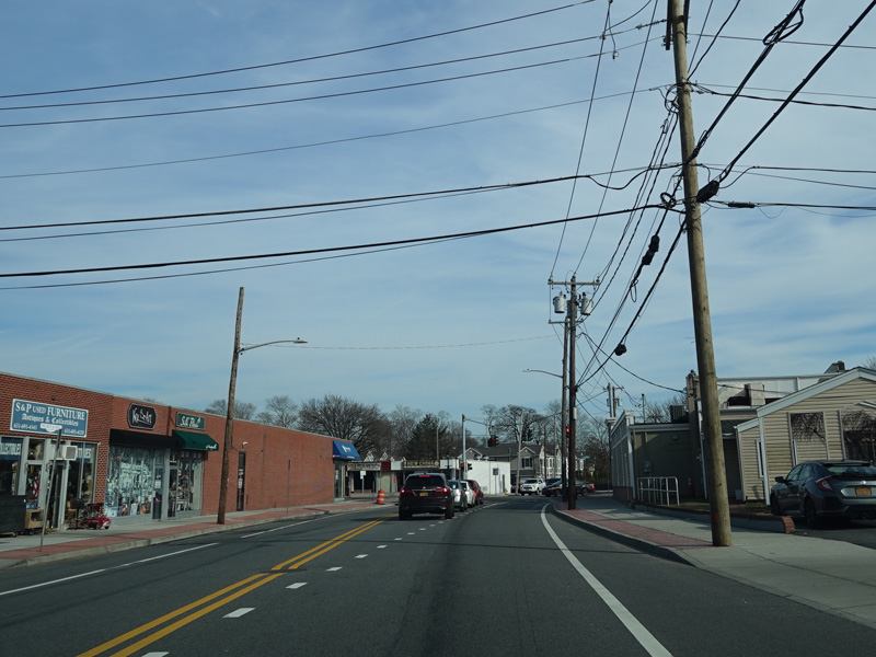 Welcome to Lindenhurst! Oak Street changes names to become Hoffman Avenue and continues next to the tracks. In Babylon, it changes names again to become Railroad Avenue.