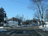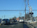There is a railroad crossing at the Main Line of the Long Island Rail Road.