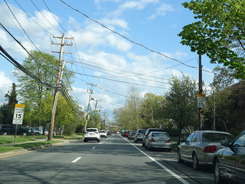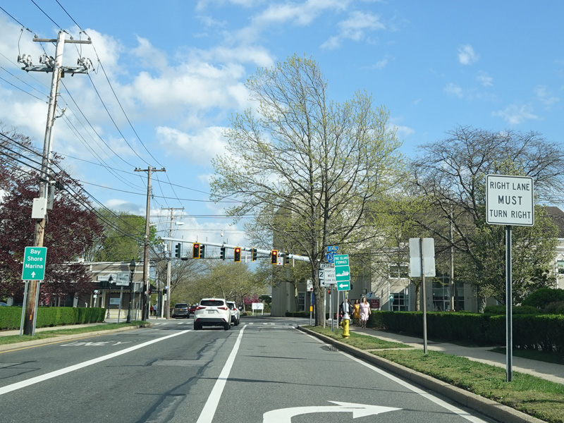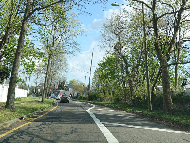 Clinton Avenue continues south through Bay Shore as a two-lane one-way street.