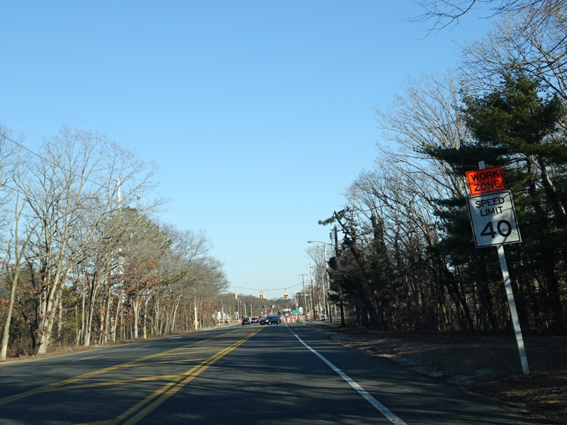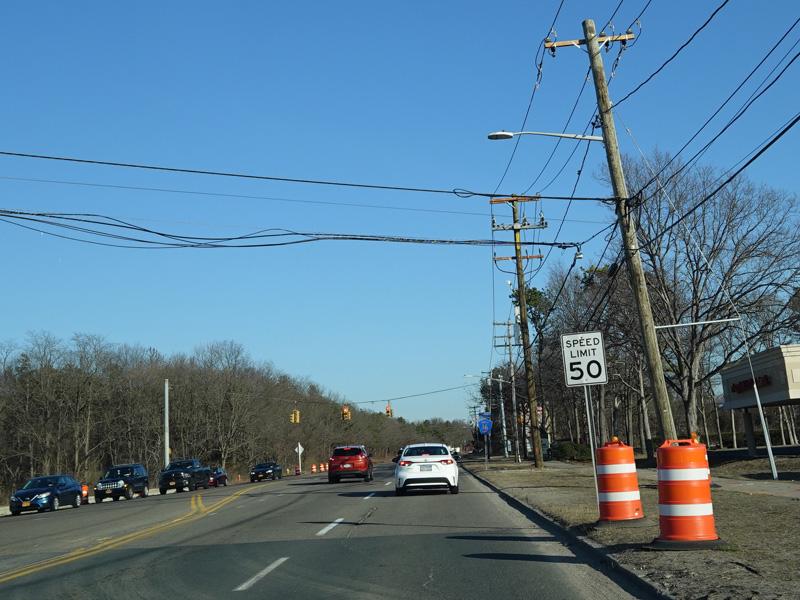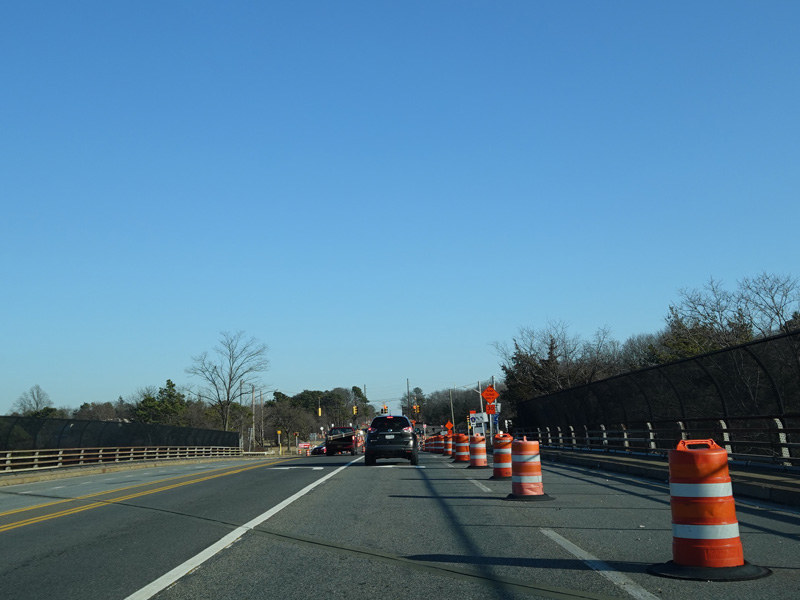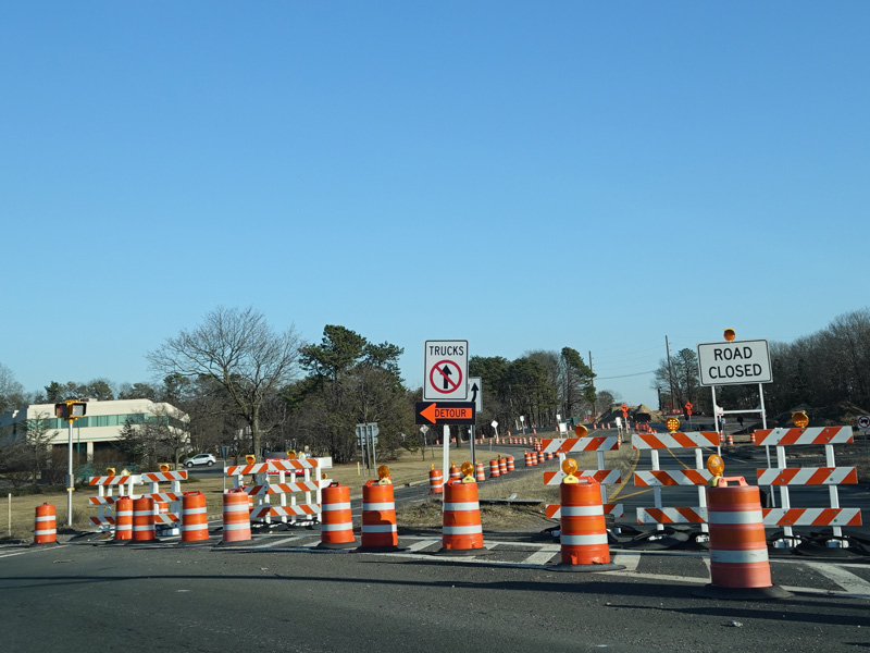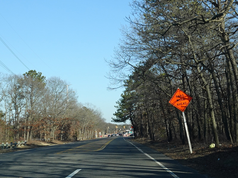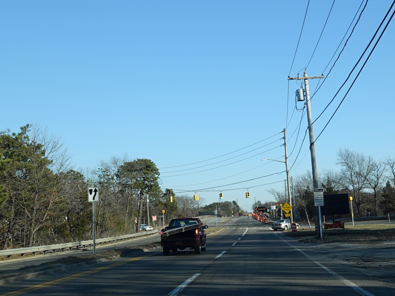 At the time that these pictures were taken, Horseblock Road was closed east of the Long Island Expressway (I-495) while the overpass crossing Long Island Avenue and the Greenport Branch of the Long Island Rail Road was being replaced.