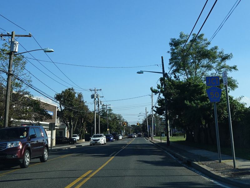 There is a traffic light at Union Boulevard (CR 50). Turn left to go east or right to go west.