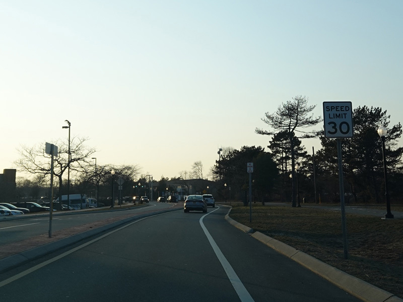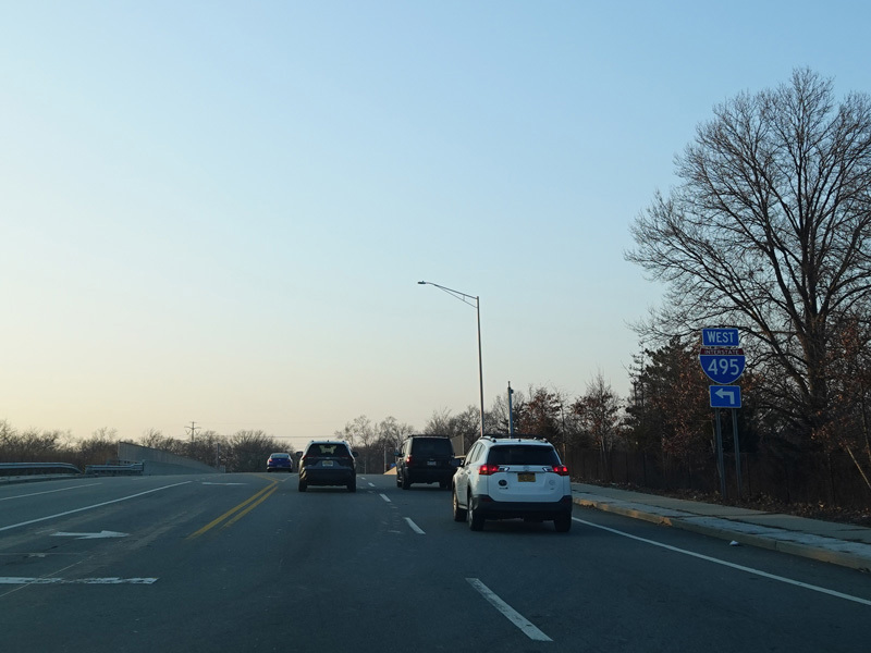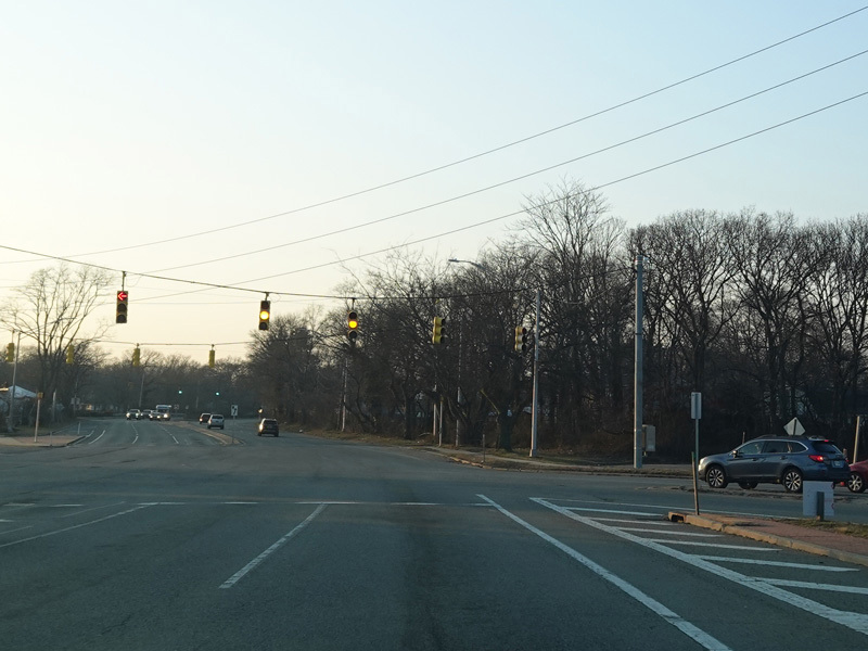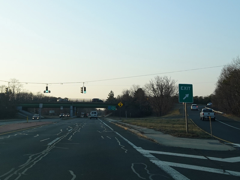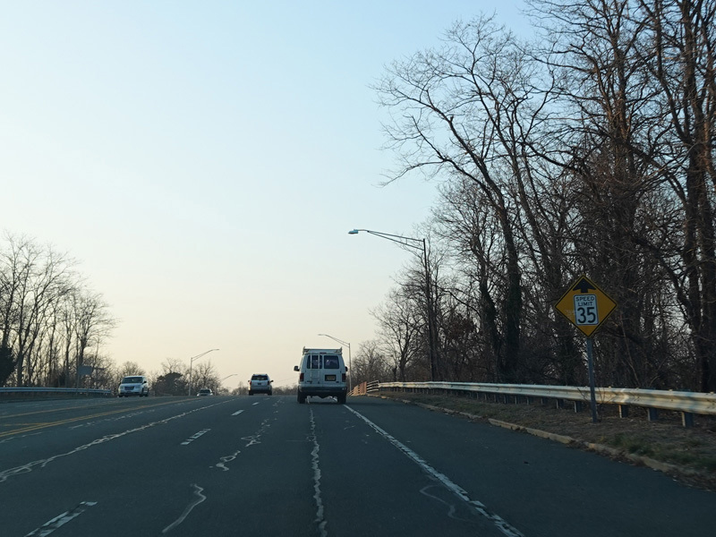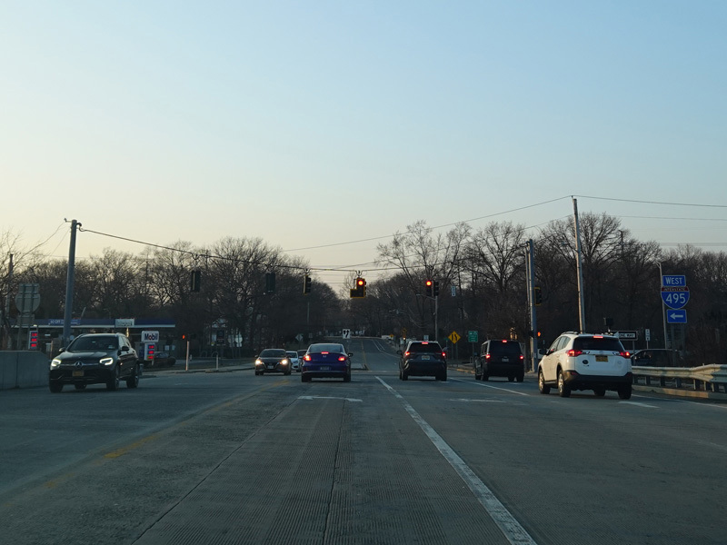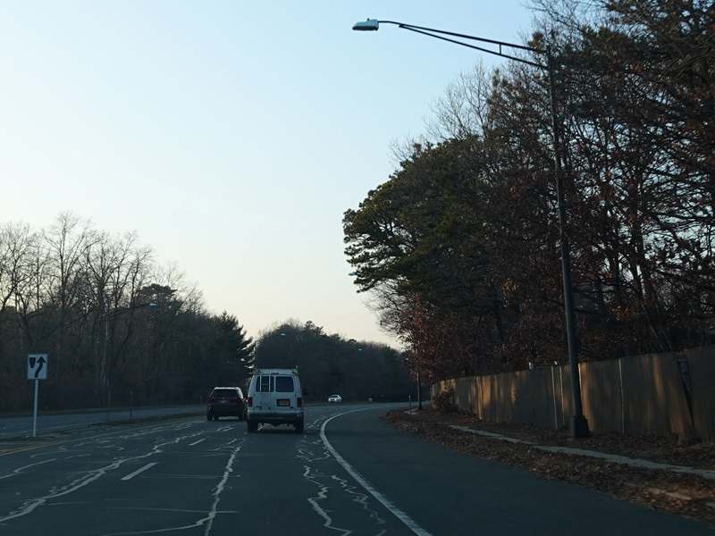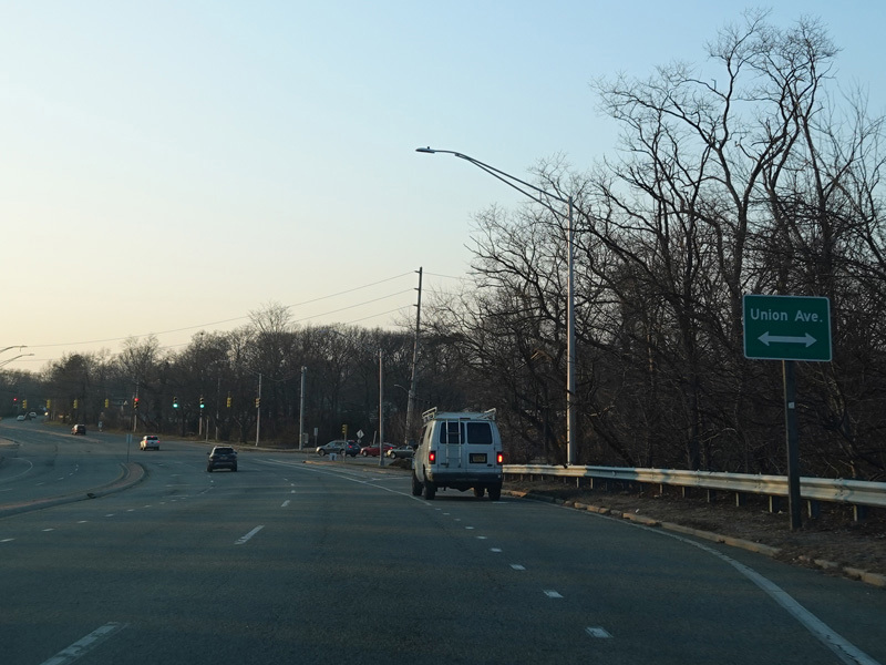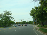 Waverly Avenue runs northwest as a four-lane road. After a short distance, it becomes a divided highway.