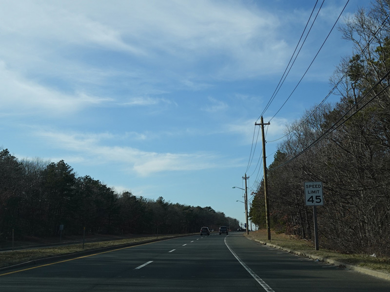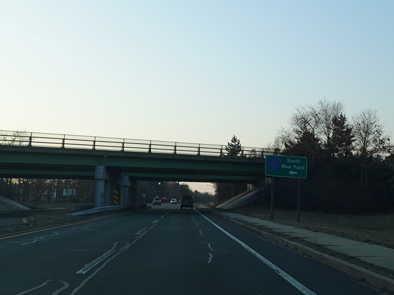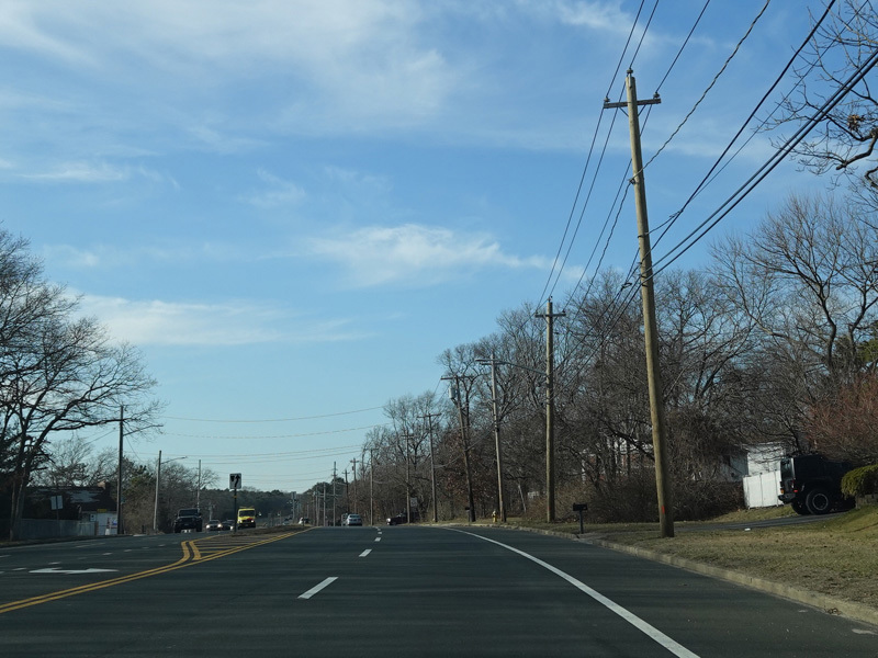 Patchogue-Holbrook Road continues north as a four-lane undivided road. There is a pedestrian overpass along this section.