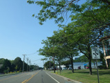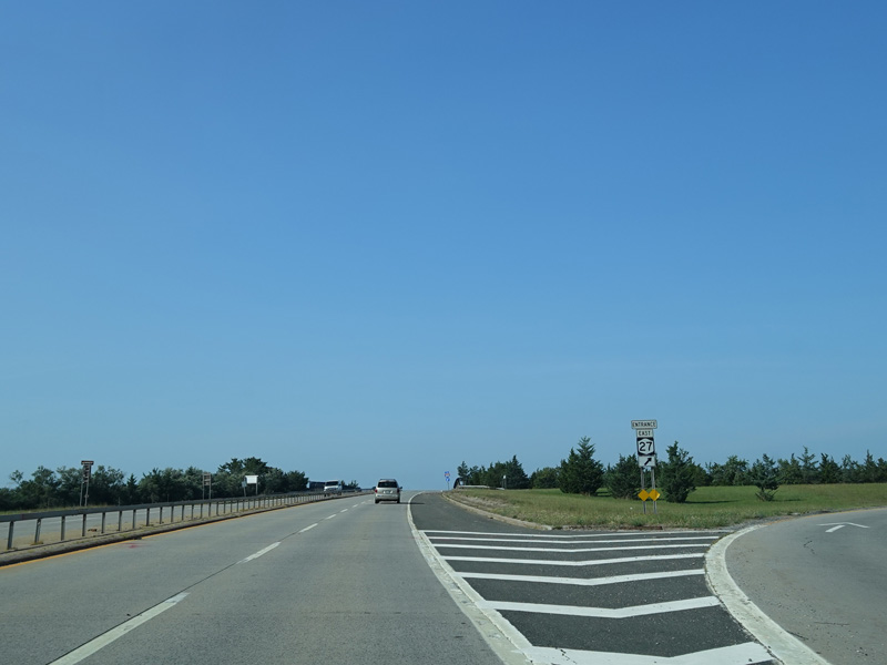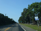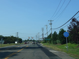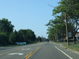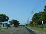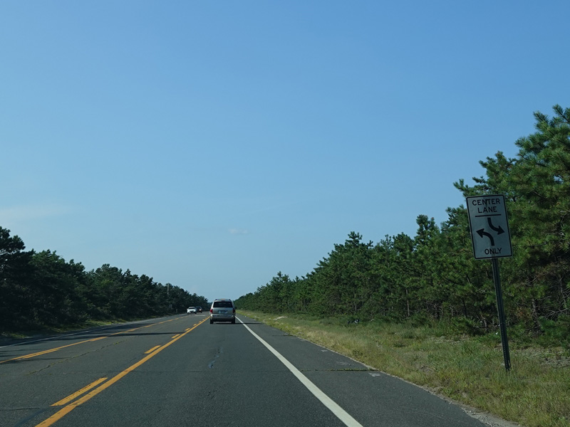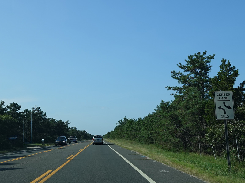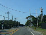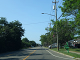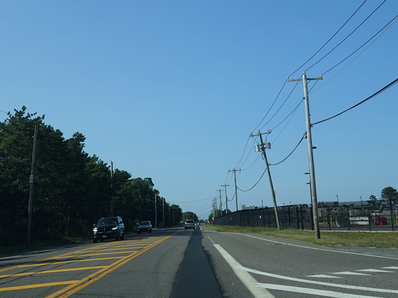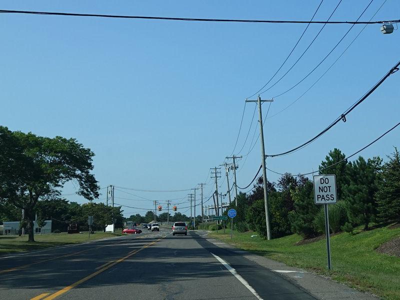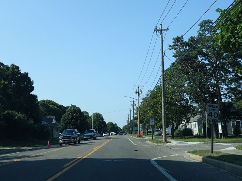 The median ends, and Old Riverhead Road narrows back down to two lanes and curves to the northeast.