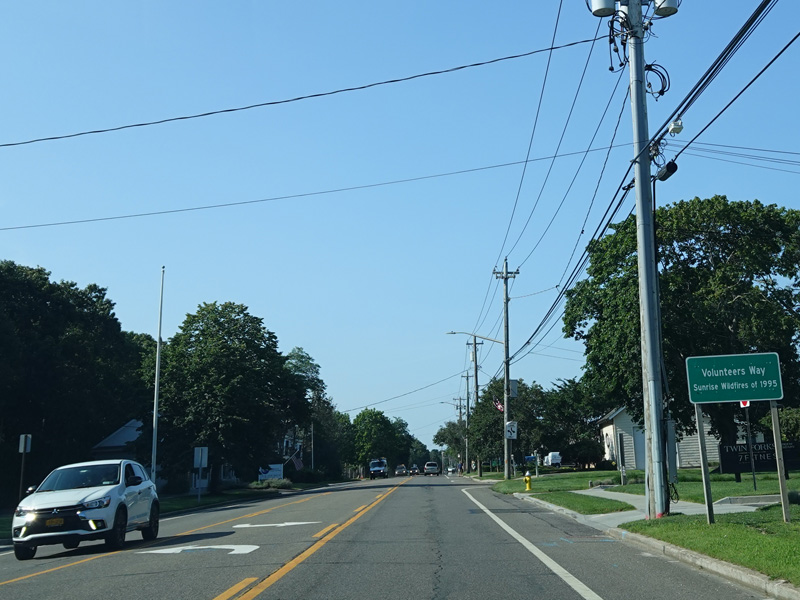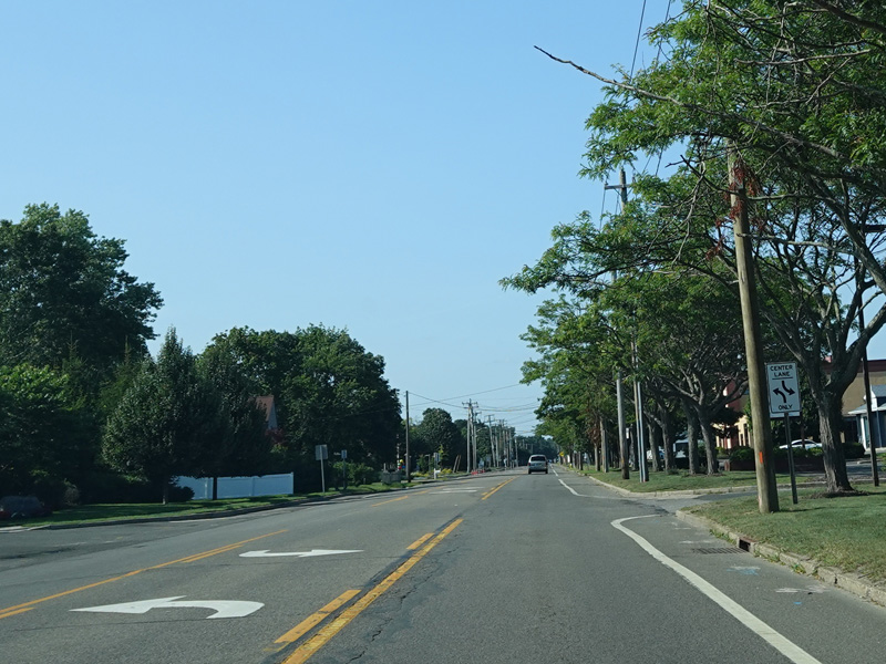 Oak Street becomes Old Riverhead Road upon crossing Montauk Highway (CR 80). It runs north as a two-lane undivided road.