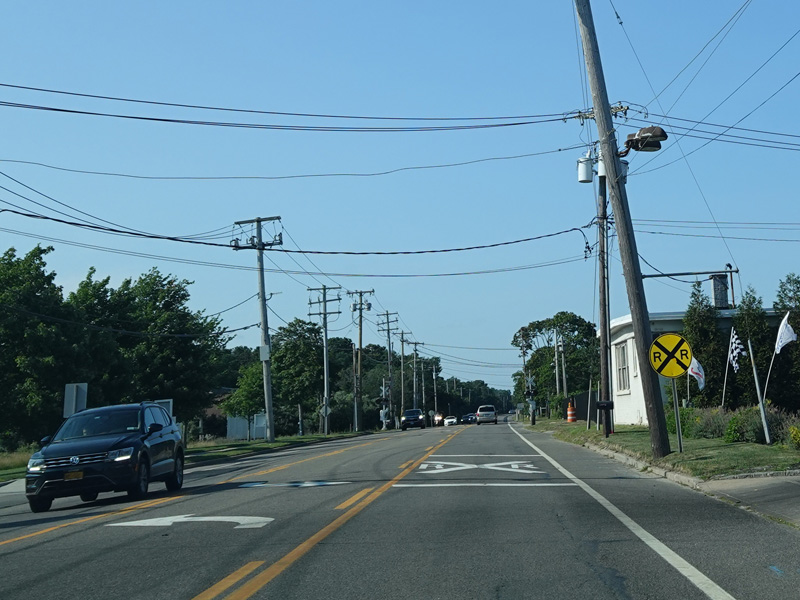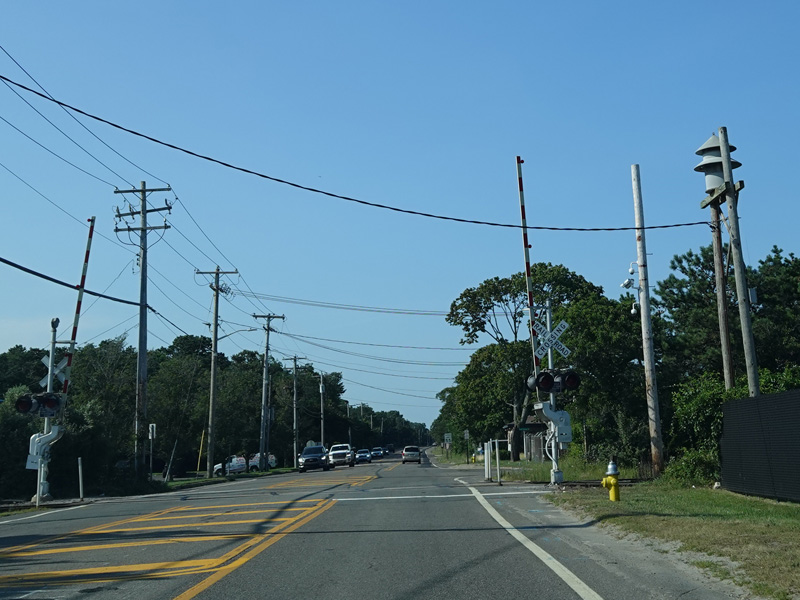 There is a grade crossing at the Montauk Branch of the Long Island Rail Road.