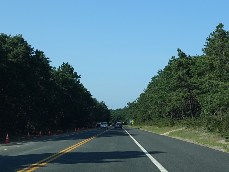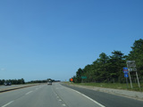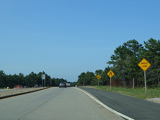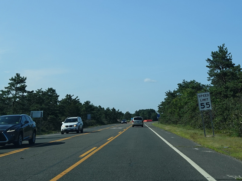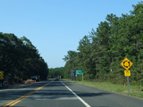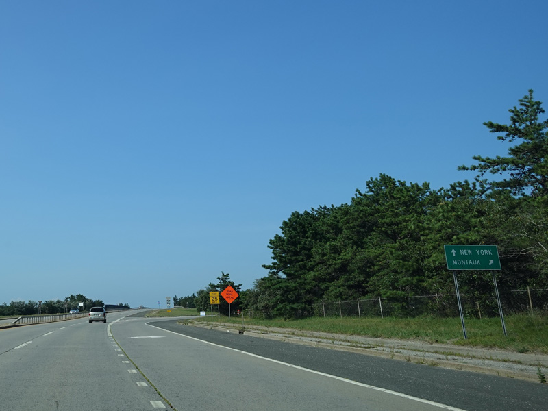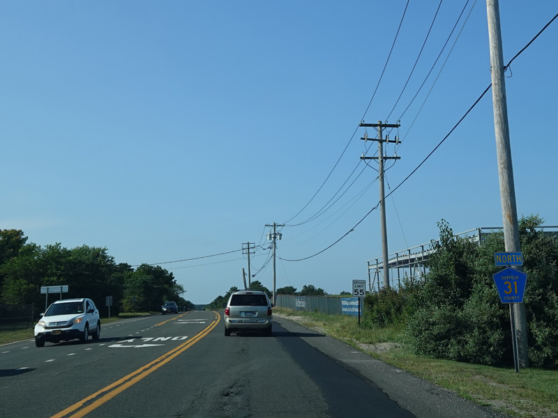 The speed limit rises to 55 MPH. Gabreski Airport is on the right in this area.