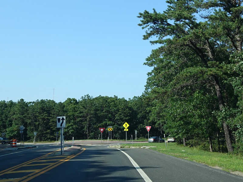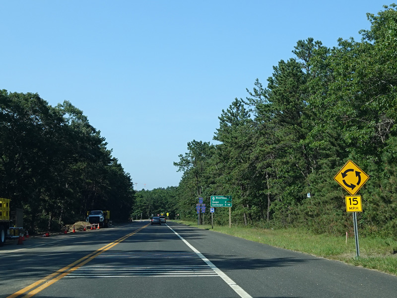 Old Riverhead Road ends here at a traffic circle at Quogue-Riverhead Road (CR 104).