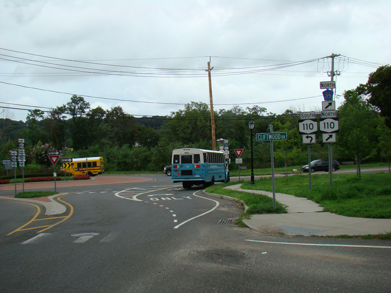 Going further back, this traffic light was found at the intersection of Park Avenue, Mill Dam Road, and New York Avenue (NY 110). It has been replaced with a pair of traffic circles.