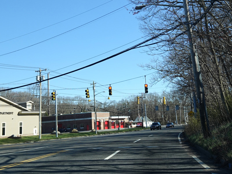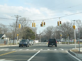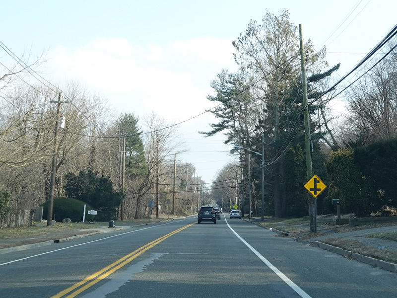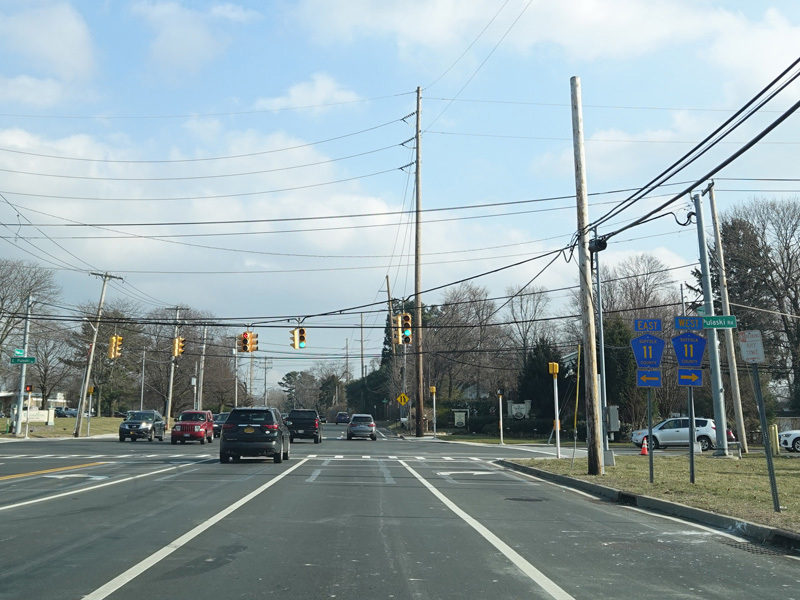 There is a traffic light at Pulaski Road (CR 11). Turn left to go east or right to go west.