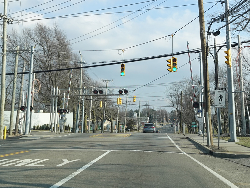 There is a railroad crossing at the Port Jefferson Branch of the Long Island Rail Road.