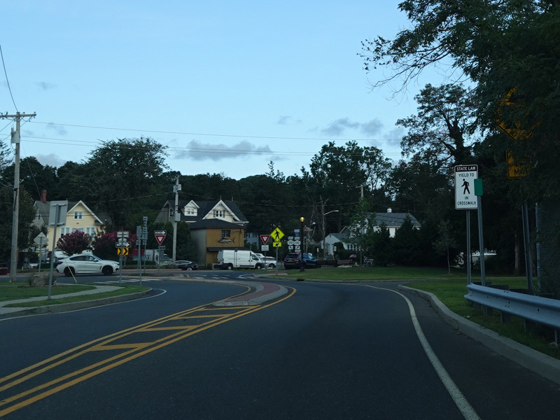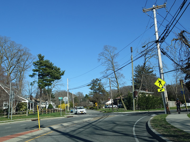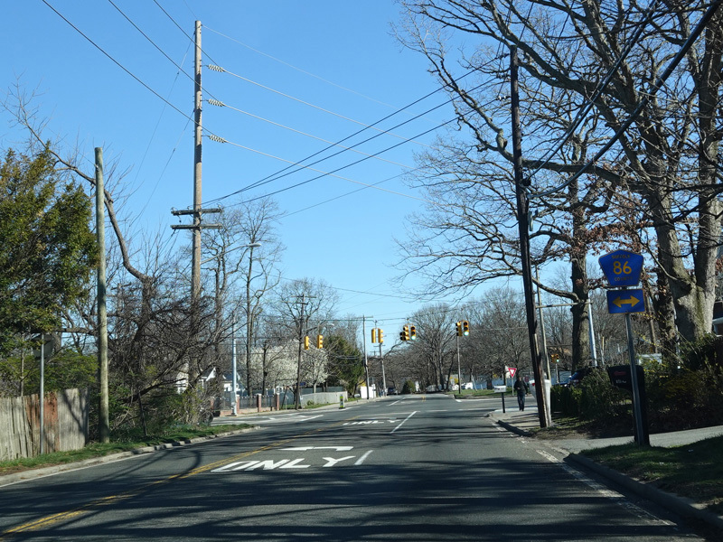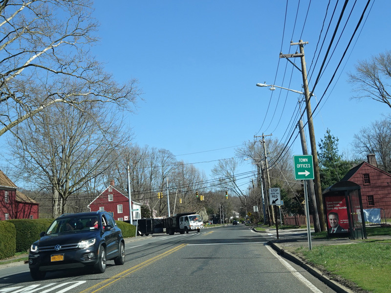 This signage used to mark the intersection with Broadway (CR 86). Until 2022, CR 86 extended south to Jericho Turnpike (NY 25). It has been truncated so that this is now its southern terminus.