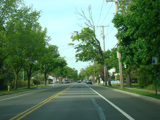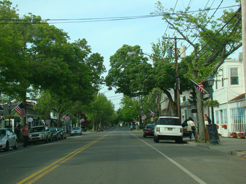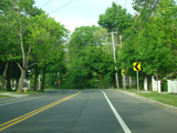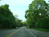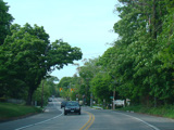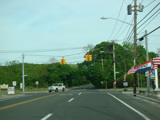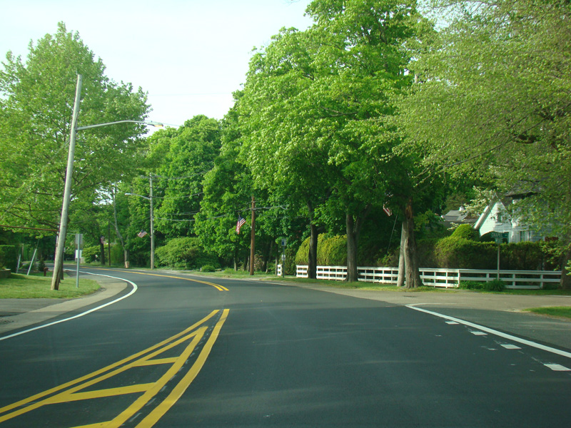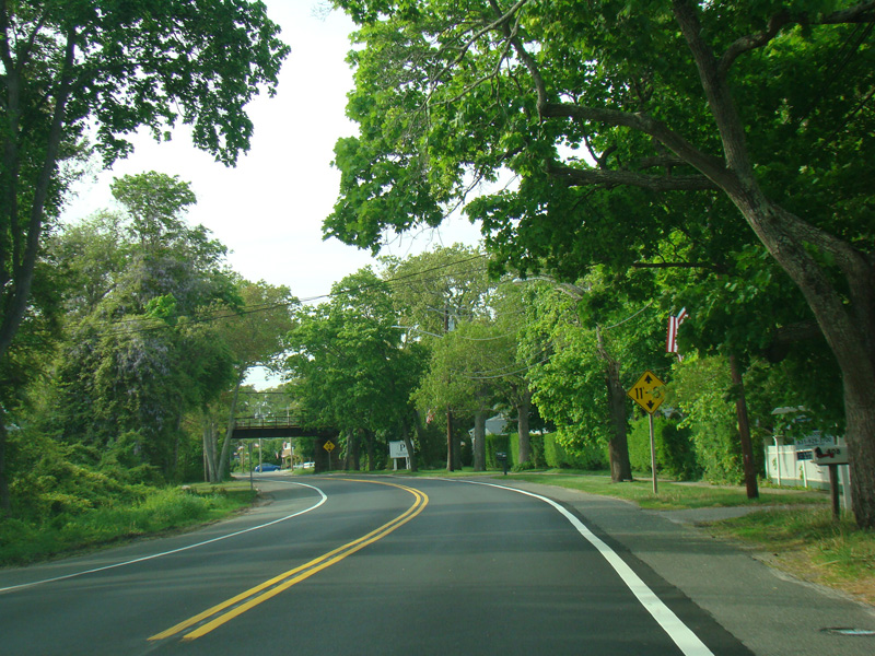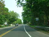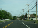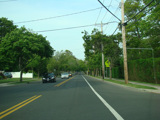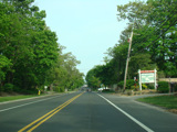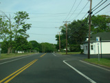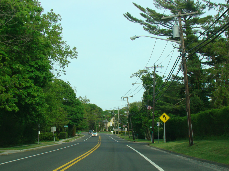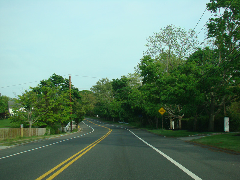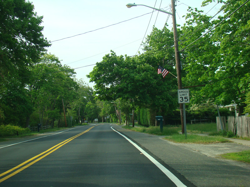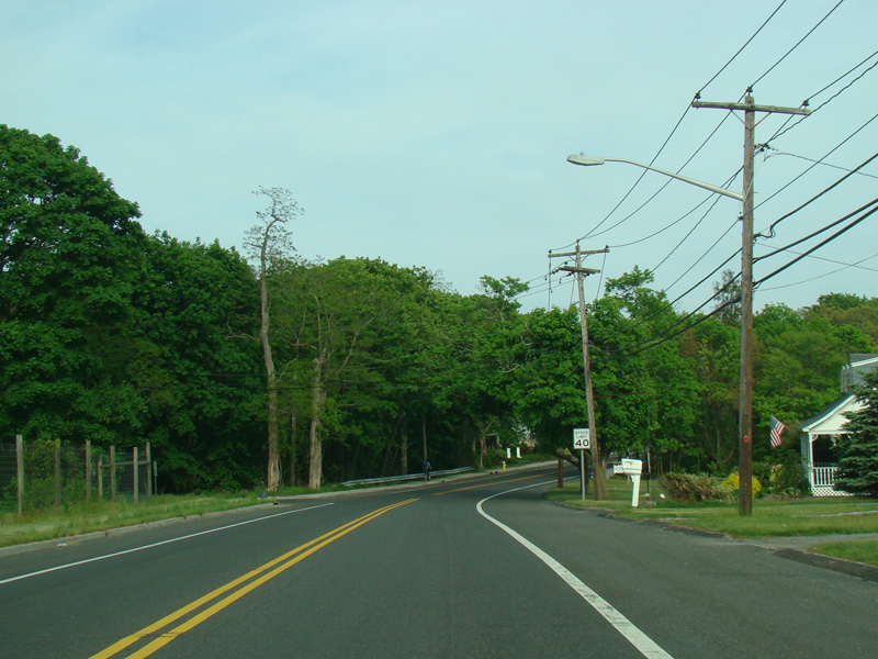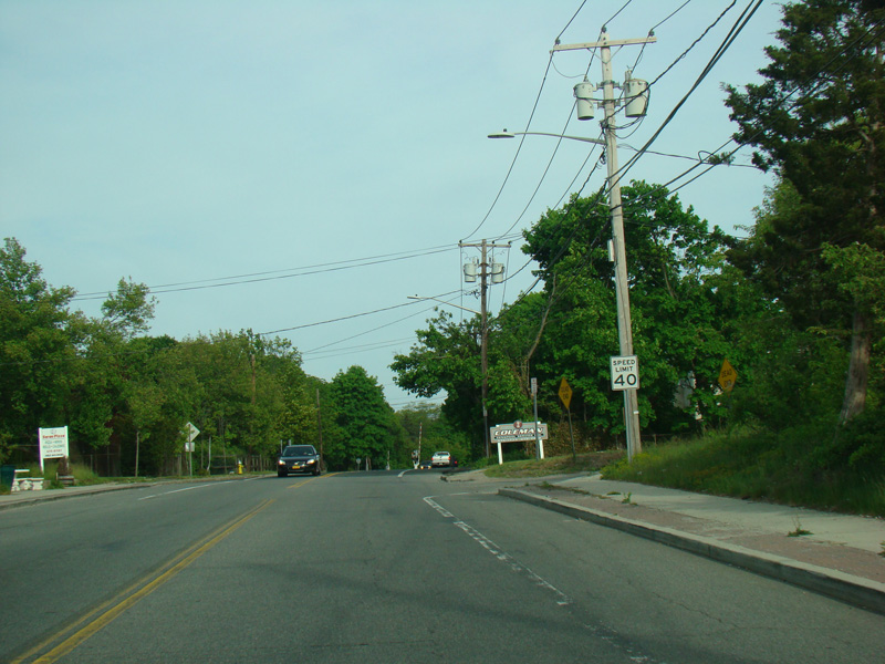 South Country Road ends here at Montauk Highway (CR 80). Turn right to go west or continue straight ahead to merge in going east. There is no county route signage at this intersection.