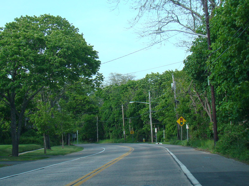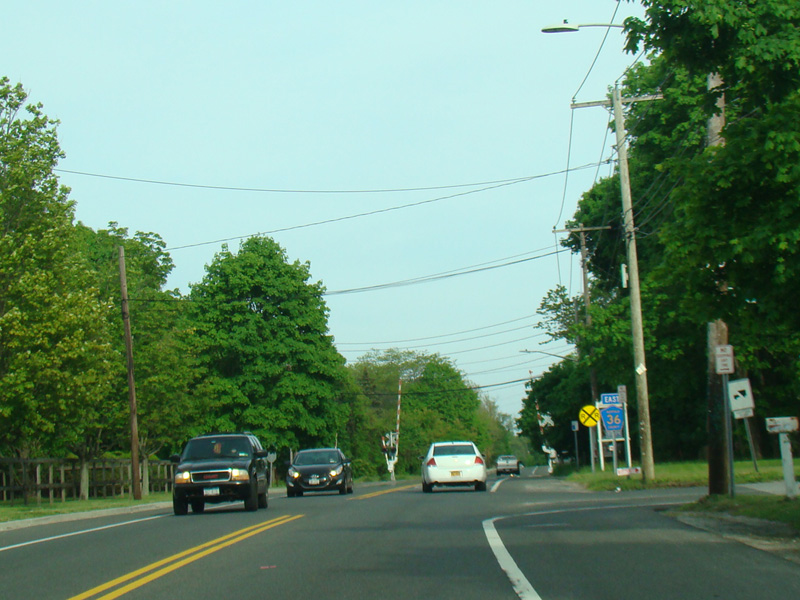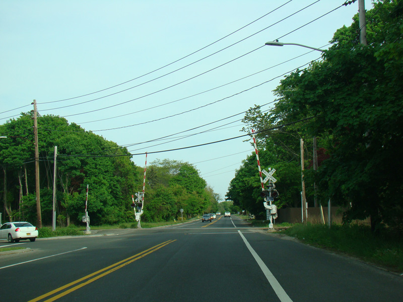 South Country Road begins at Montauk Highway (CR 80) in East Patchogue. There is a railroad crossing at the very beginning.
