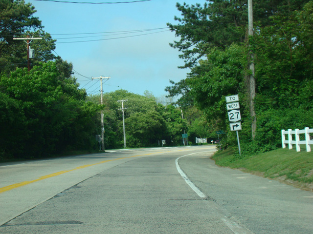 At its eastern terminus, North Road changes names to become Flying Point Road and changes numbers to become CR 39A. NY 27 continues, multiplexed with CR 39A, along Flying Point Road.
