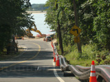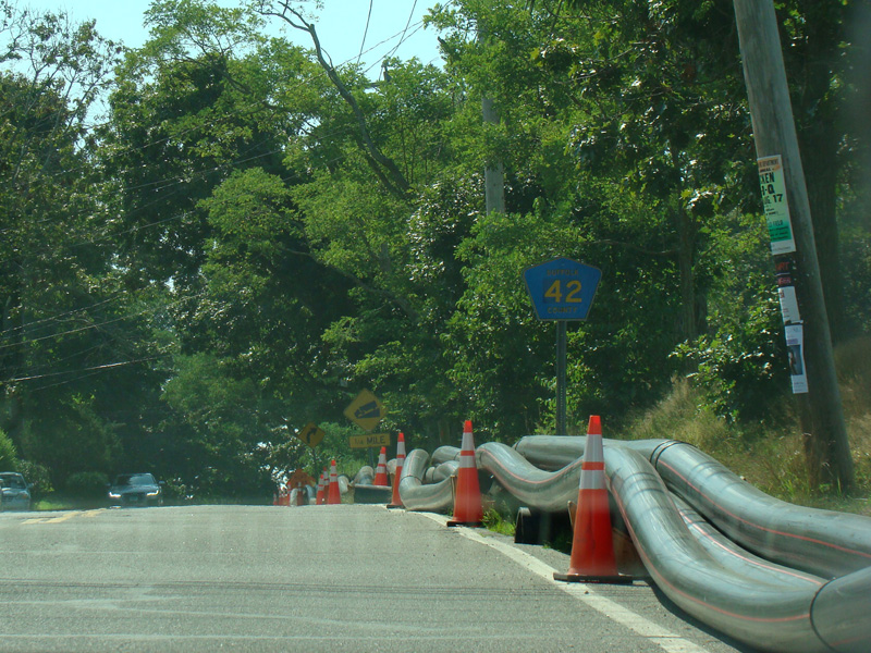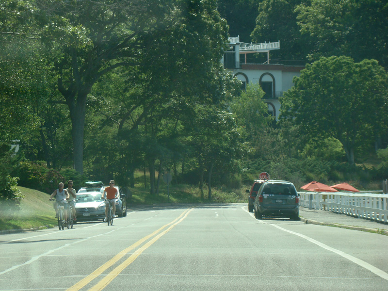 Shore Road begins at West Neck Road (CR 115) and goes down a hill to the beach.