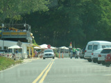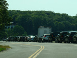 Shore Road runs west along the beach. There are parking spaces along the right side for motorists visiting the beach.