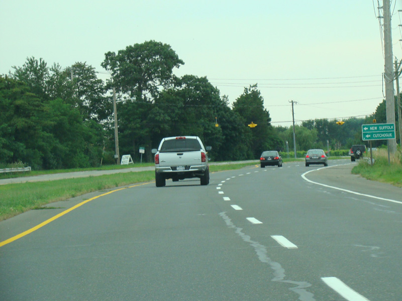In Southold, Middle Road widens to become a four-lane divided road. It continues west to Mattituck.