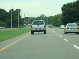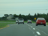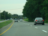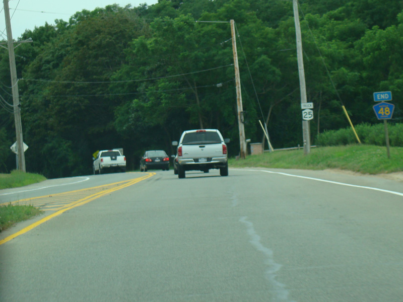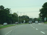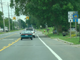 At the western terminus, Middle Road narrows down to two lanes, loses its divider, merges with Sound Avenue, and ends. Continue straight ahead to go west on Sound Avenue. If the extension of the Long Island Expressway (I-495) from Riverhead to Mattituck had been built, the western terminus of the expressway would have been here.