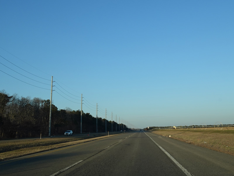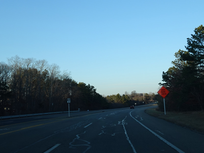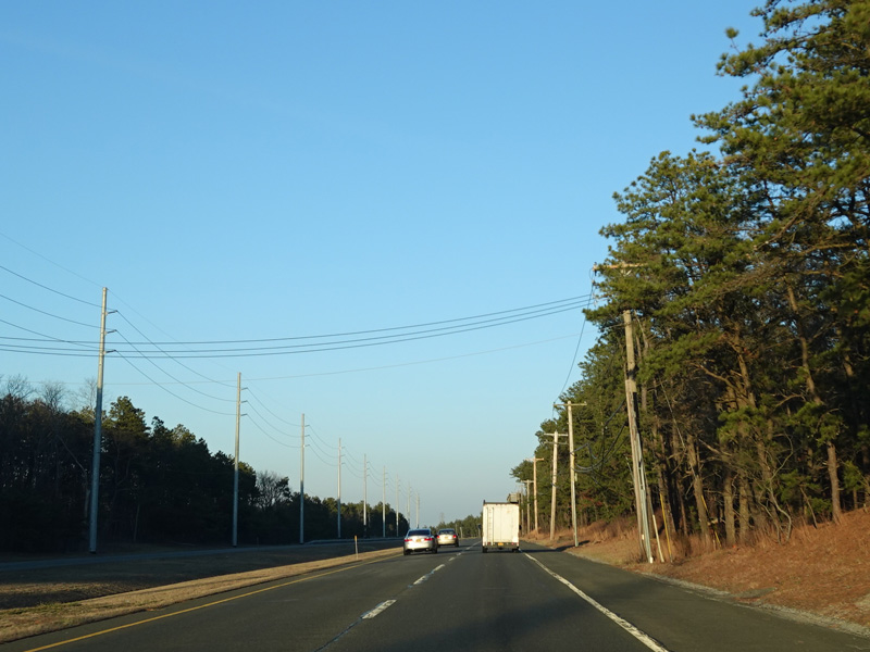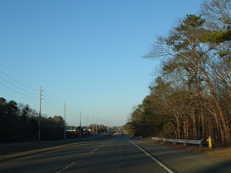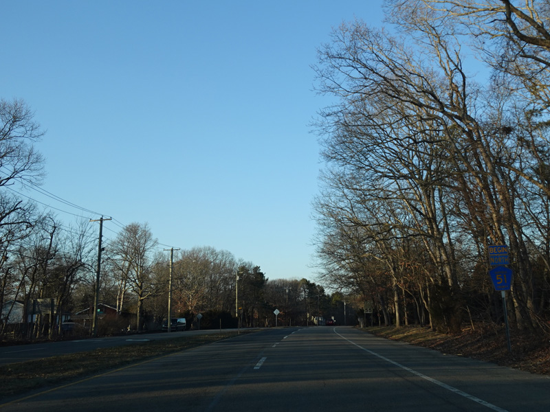 East Moriches-Riverhead Road continues to the northeast. The surroundings are pretty rural out here.