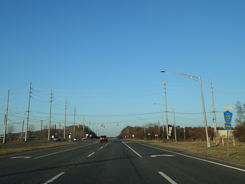 There is a traffic light at Eastport Manor Road (CR 55). Turn right go south and for westbound entrance to Sunrise Highway (NY 27).