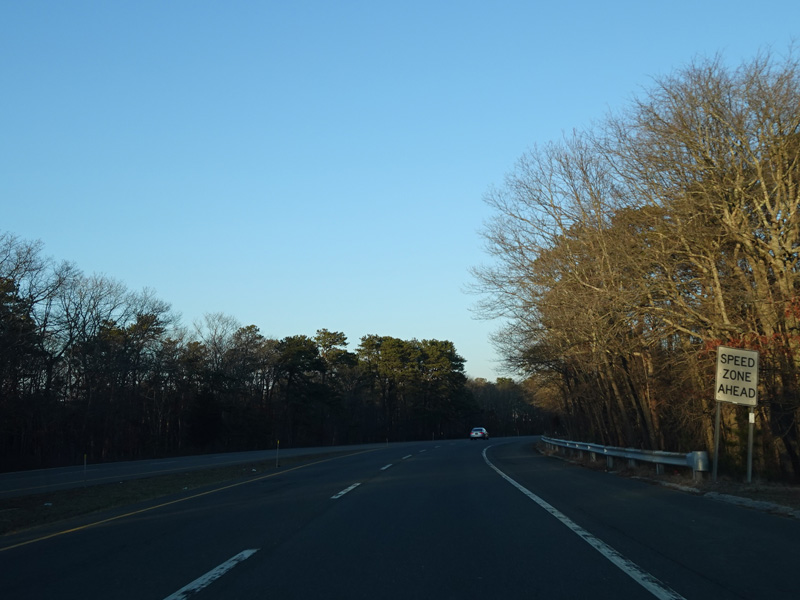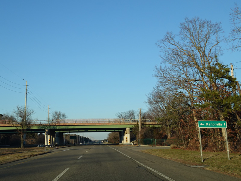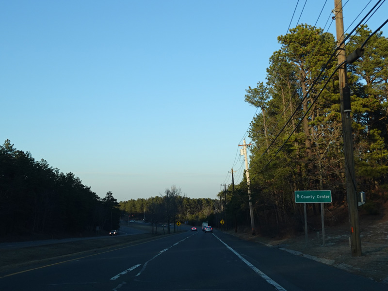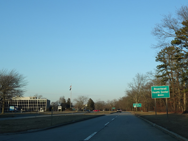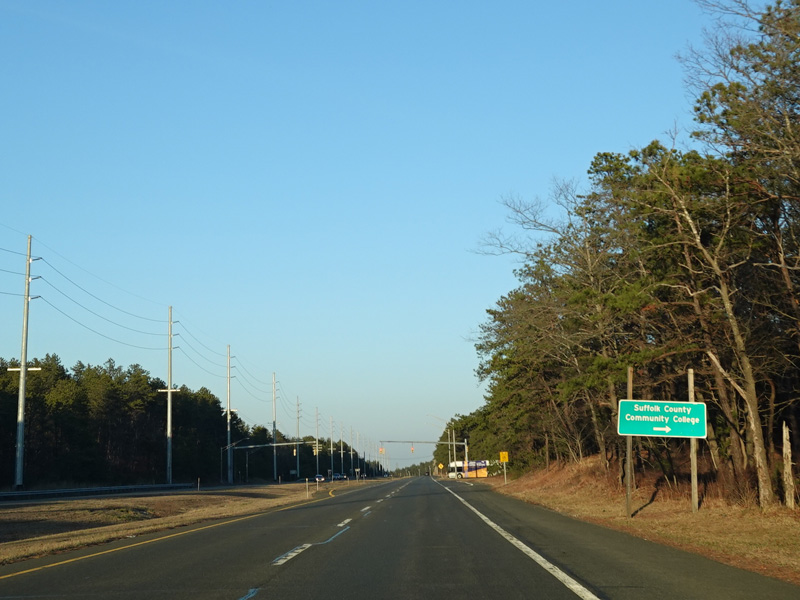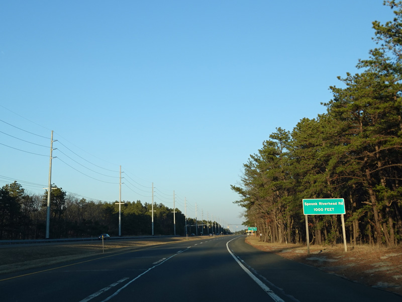 East Moriches-Riverhead Road runs northeast as a four-lane divided highway.