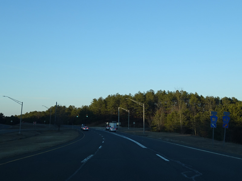 East Moriches-Riverhead Road ends at a traffic light at Lake Avenue (CR 63), which begins on the right. CR 51 continues straight ahead as Center Drive South.