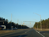 East Moriches-Riverhead Road begins at Montauk Highway (CR 80) in East Moriches. At first, it is a four-lane divided highway, but the median ends after a short distance.