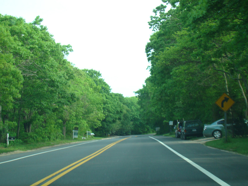 Sandy Hollow Road ends at North Road (NY 27/CR 39). Sebonac Road is to the right just before the end.
