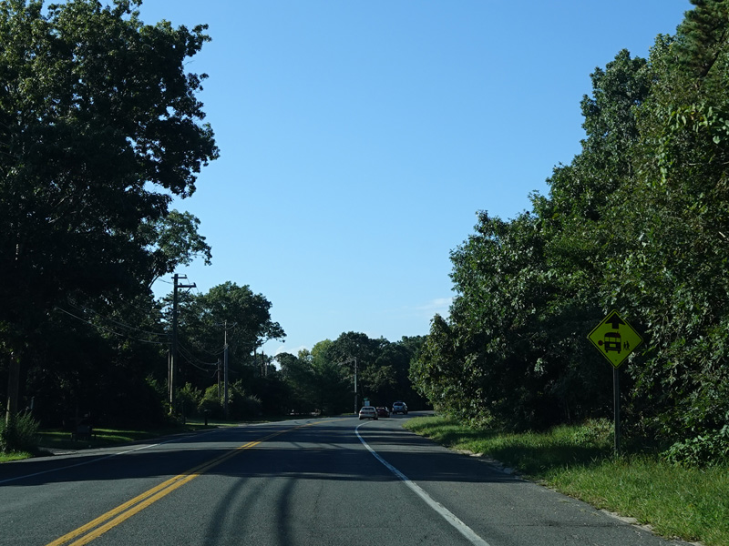 Eastport Manor Road begins at Montauk Highway (CR 80) and runs north as a two-lane undivided road.