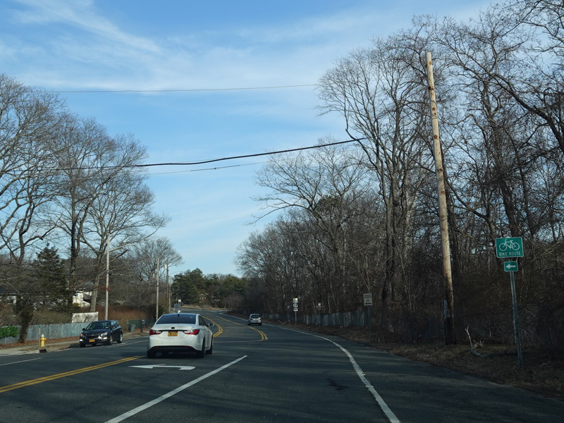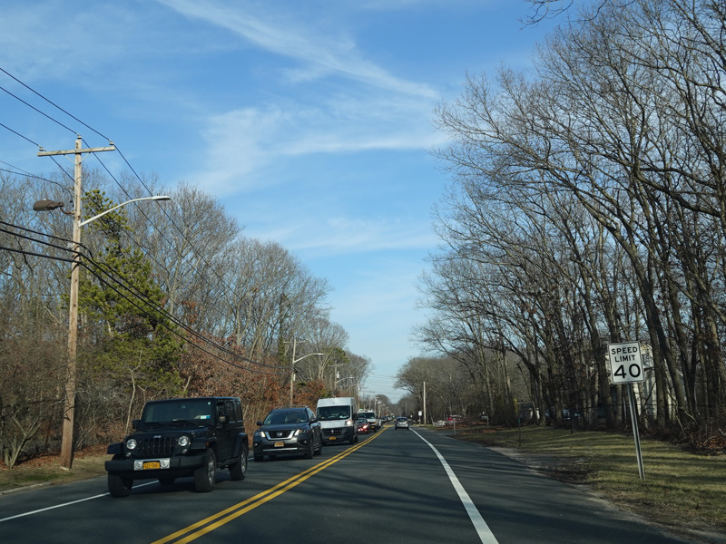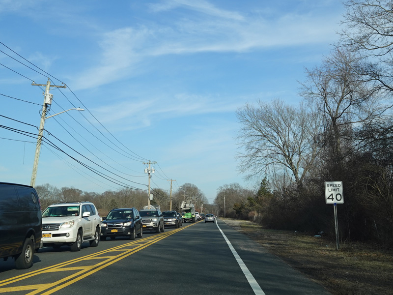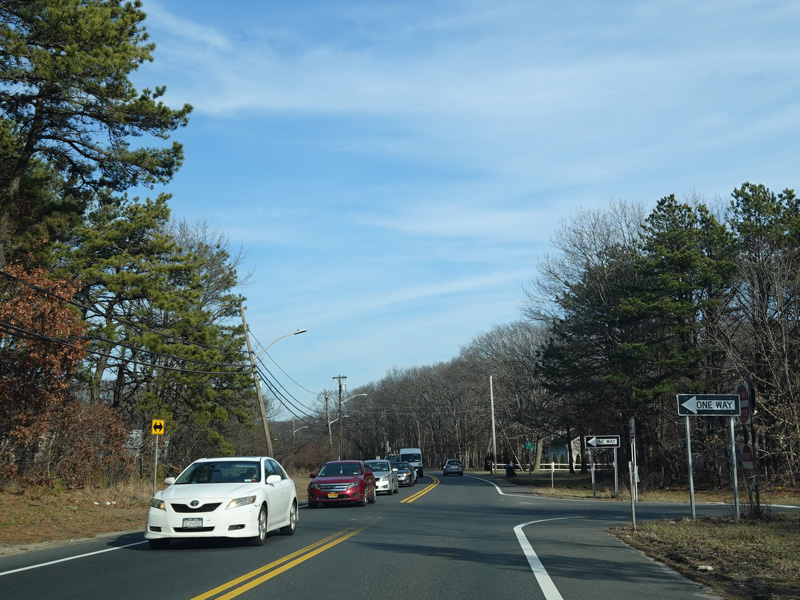 There is a westbound entrance to Sunrise Highway (NY 27) on the right.