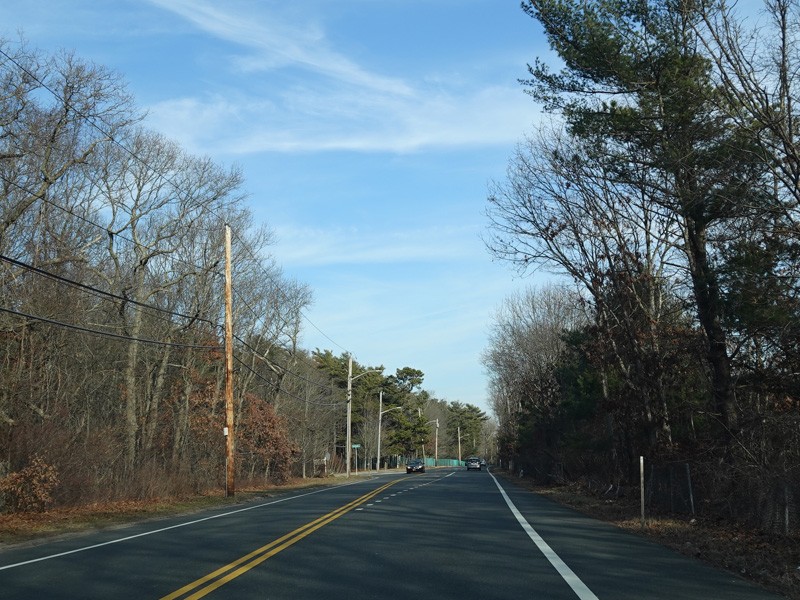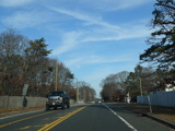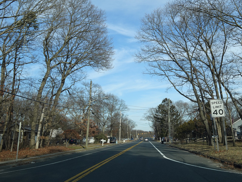 Victory Avenue ends at a traffic light at the William Floyd Parkway (CR 46). Turn left to go north or right to go south.