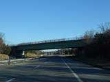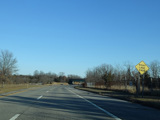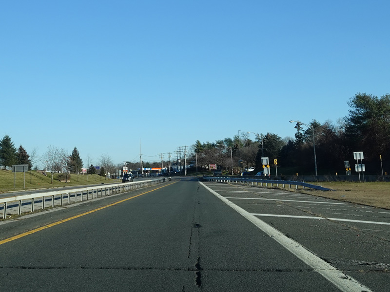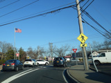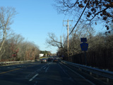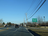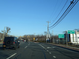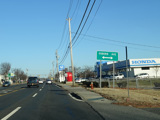 There is a traffic circle at Roanoke Avenue (CR 73). The signage here is technically wrong. CR 73 has its northern terminus here, and the section of Roanoke Avenue north of here is a local street.
