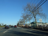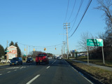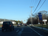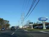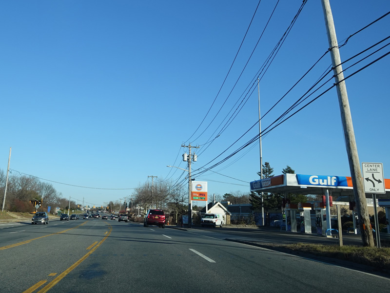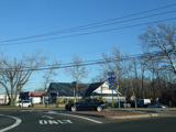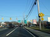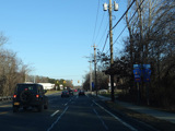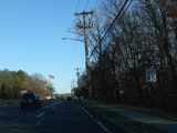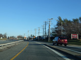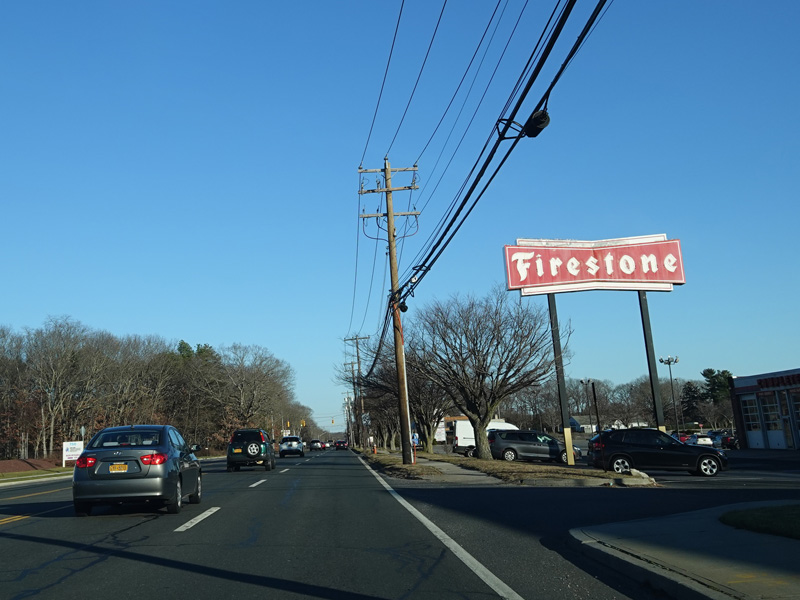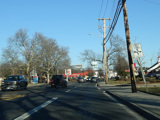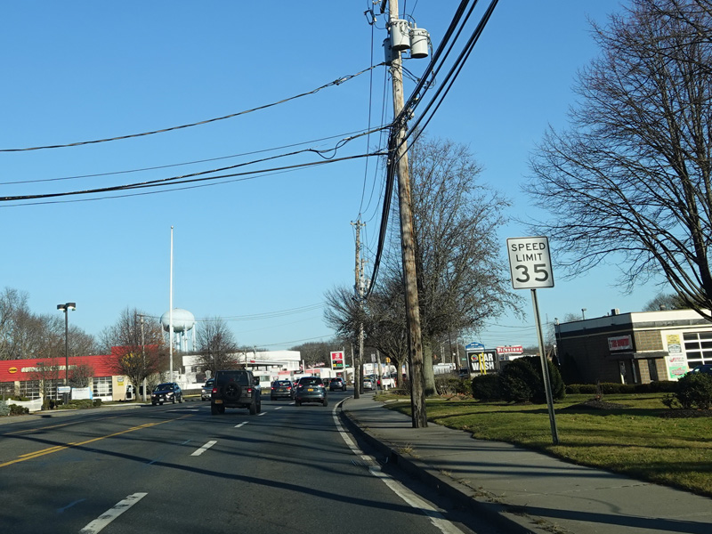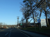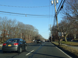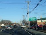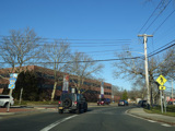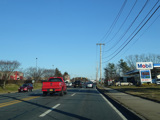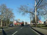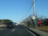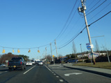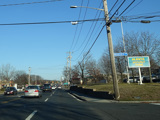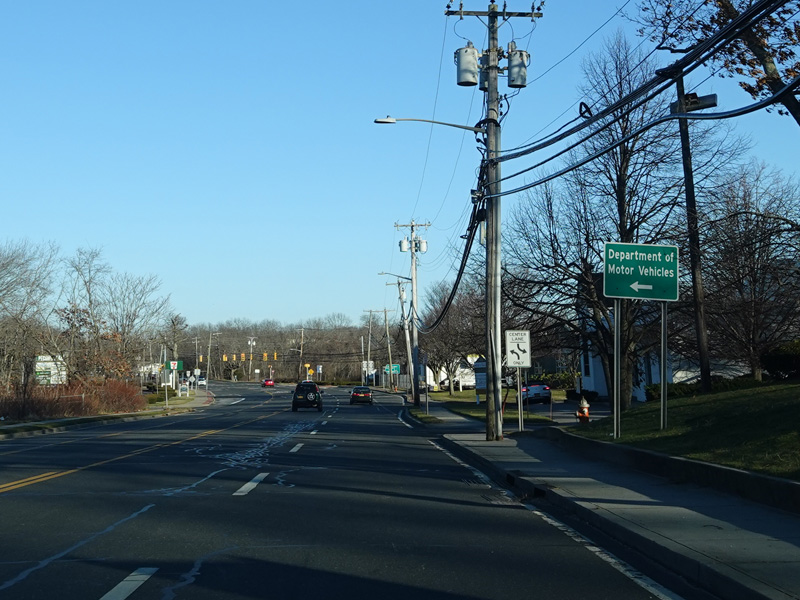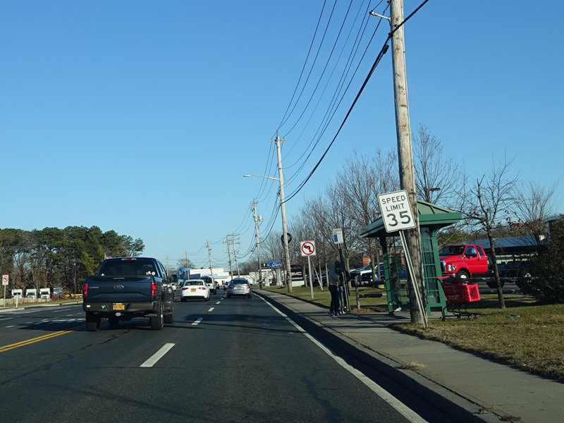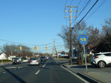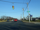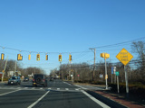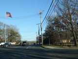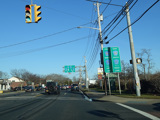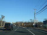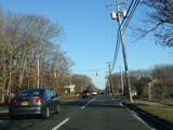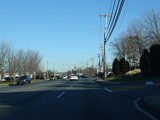 Old Country Road runs east as a four-lane undivided road. There are traffic lights at Mill Road, Pulaski Street, Osborn Avenue, and Harrison Avenue.