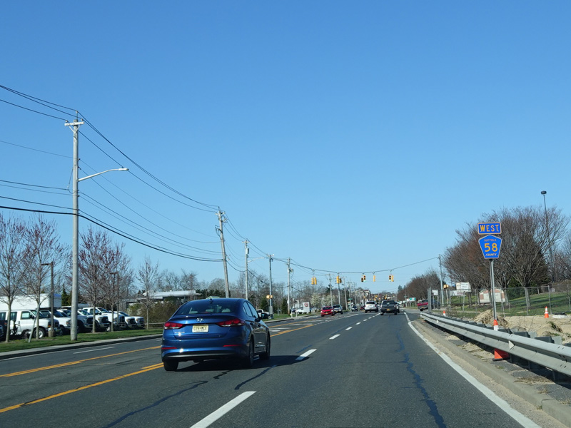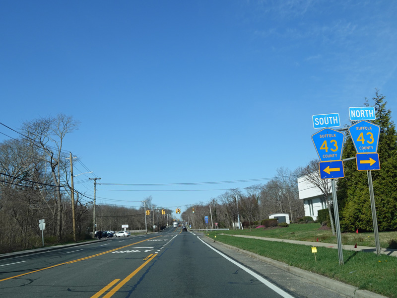 There is a traffic light at Northville Turnpike (CR 43). Turn right to go north or left to go north.