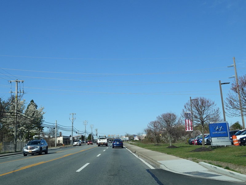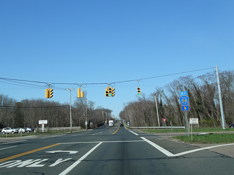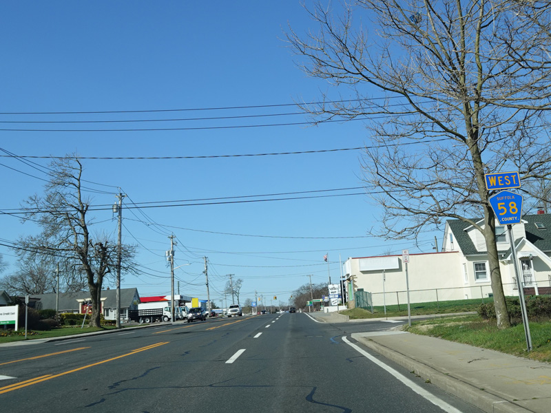 Old Country Road begins at Main Road (NY 25) and runs west through Riverhead.
